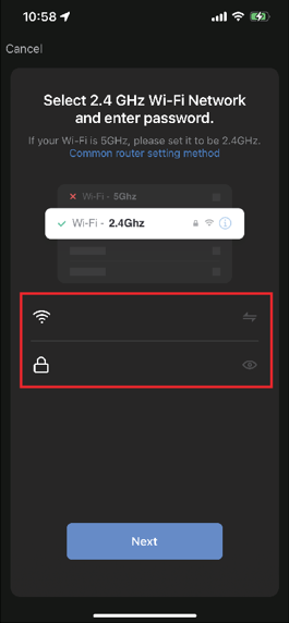 Далее введите название и пароль вашей Wi-Fi сети, нажмите "Далее" (как показано на рисунке ниже). После подключения дайте название устройству и отнесите его к комнате (если вам это требуется).