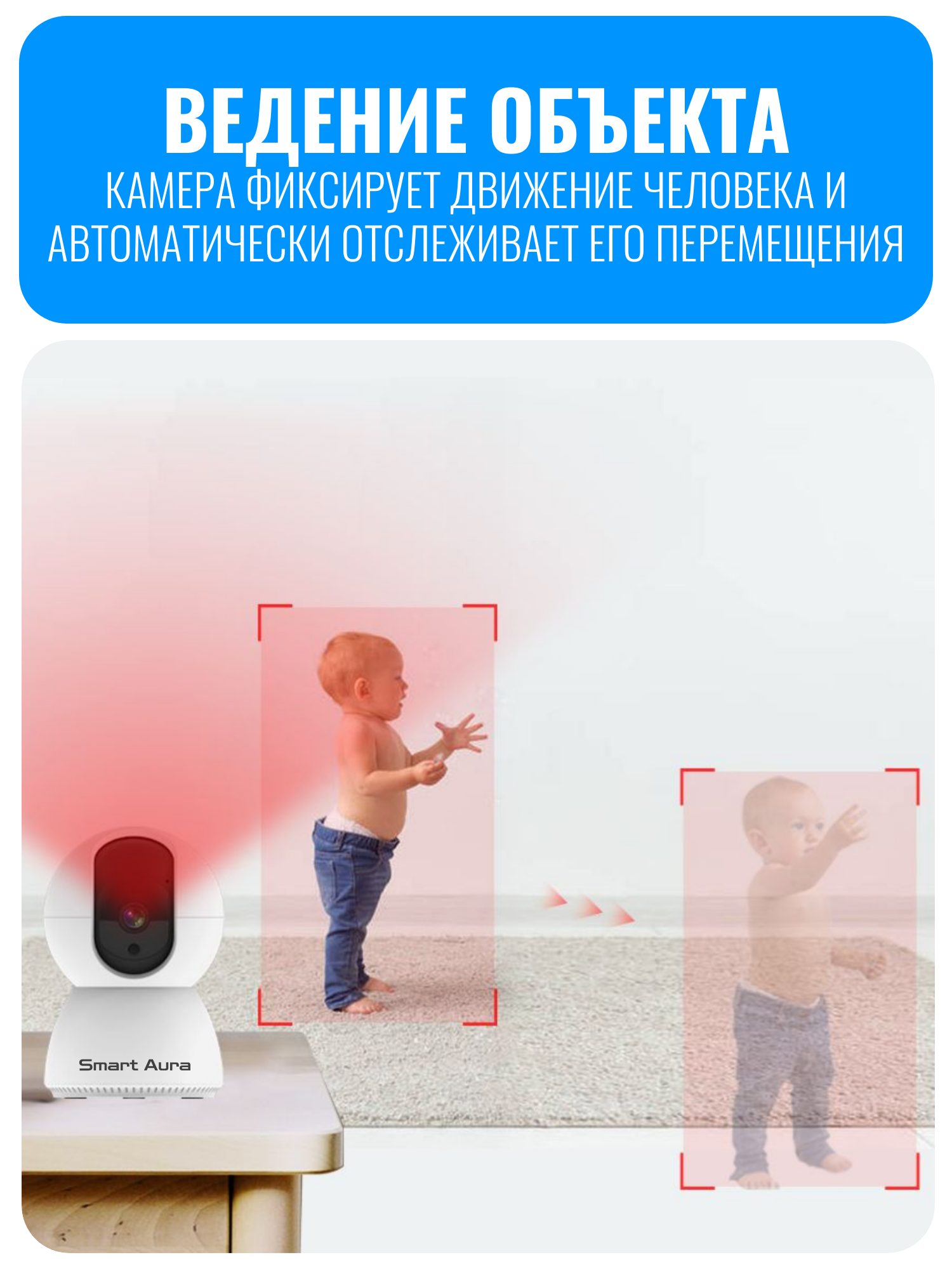 Камера видеонаблюдения Smart Aura SA-VS-TY300S — это надежное решение для защиты вашего дома и контроля за детьми или пожилыми членами семьи. Она подключается к интернету через Wi-Fi 2.4 ГГц и управляется через приложения Smart Life или DIGMA Smartlife. Через приложение можно управлять поворотом камеры: на 355 градусов по горизонтали и на 80 градусов по вертикали, что дает почти полный обзор помещения.