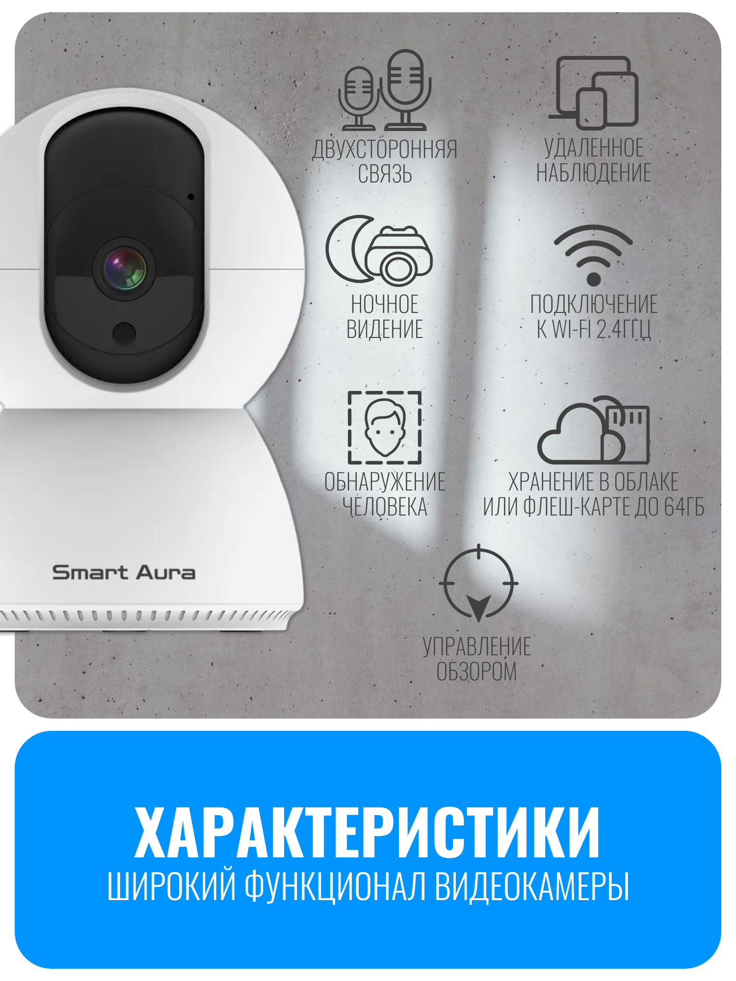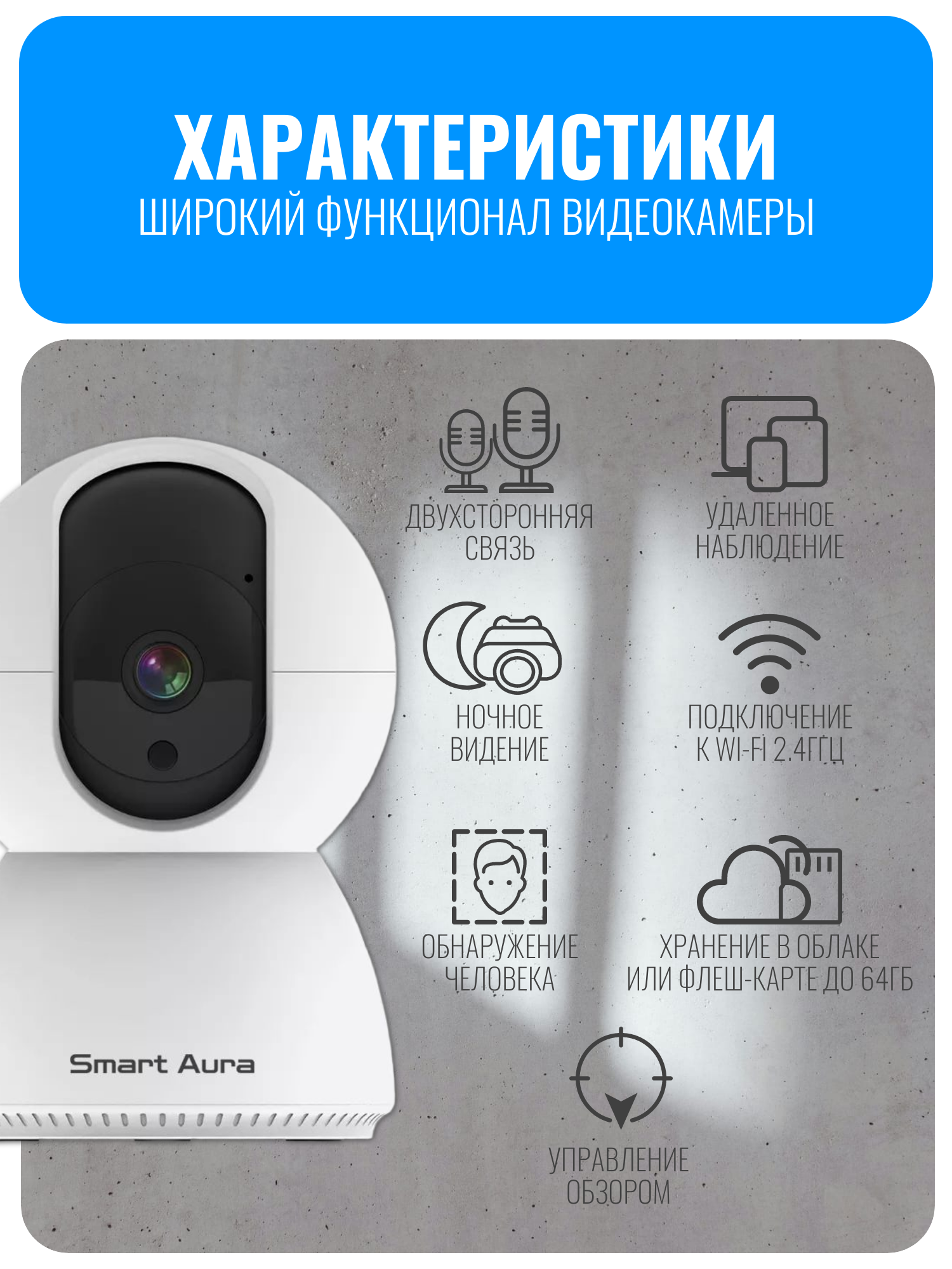 видеокамера, камера видеонаблюдения, wifi камера, поворотная камера, видеоняня, ip камера, видеонаблюдение smart aura