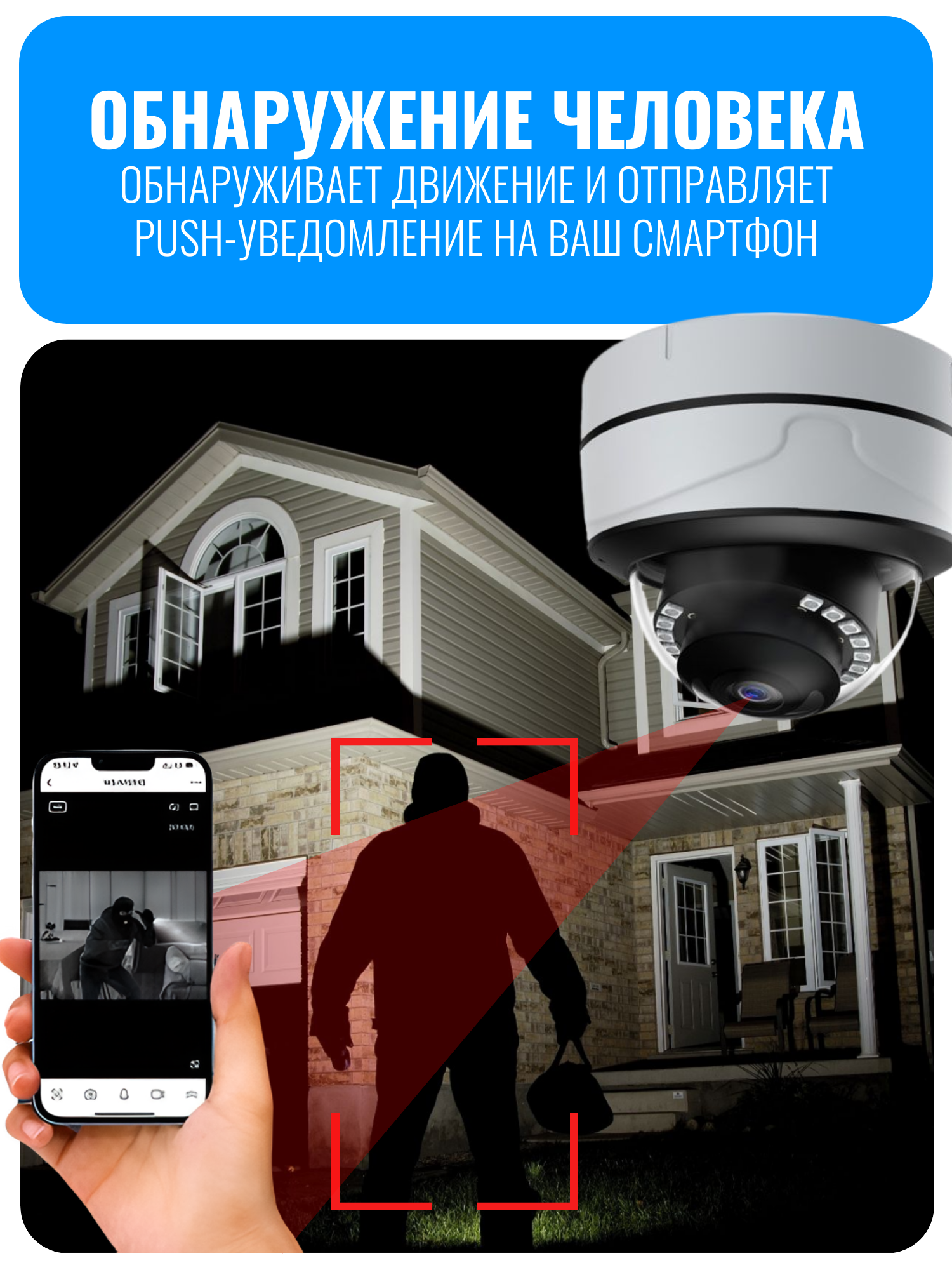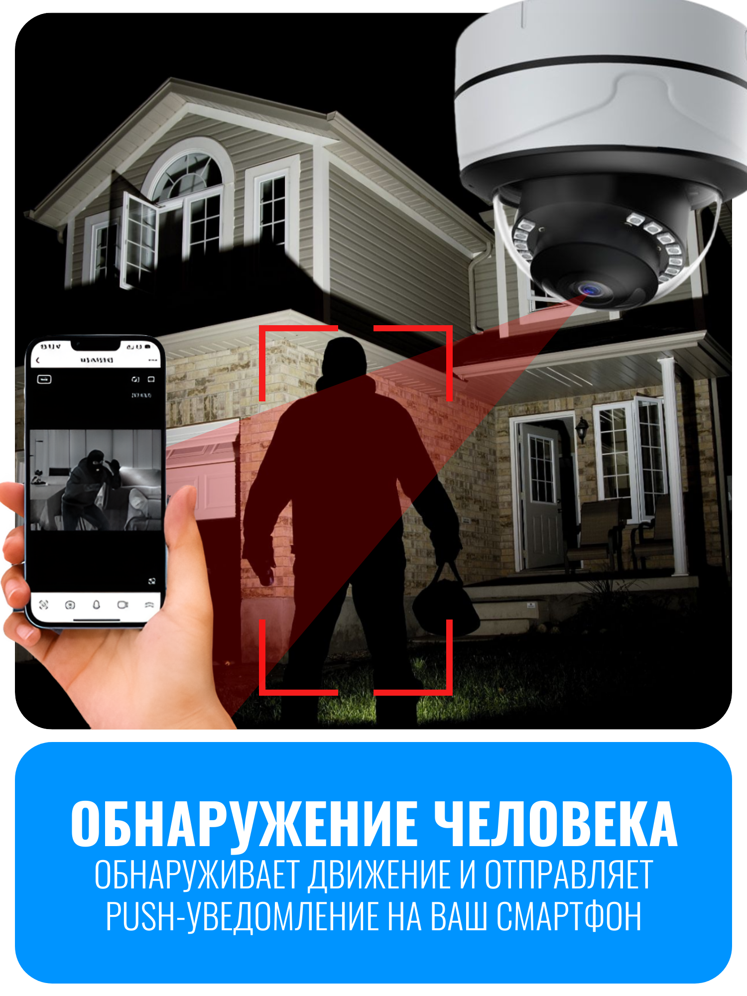 Поддержка стандарта Onvif позволяет камере автоматически подключаться к общей системе видеонаблюдения, что значительно сокращает время на настройку. Уличная купольная видеокамера оснащена различными функциями для повышения безопасности. Она может обнаруживать человека и отправлять уведомления на смартфон. Ночной режим активируется автоматически благодаря 12 инфракрасным светодиодам, обеспечивая качественное изображение даже в темноте. Дополнительно предусмотрена функция сирены, которая может быть активирована как вручную, так и при обнаружении движения.