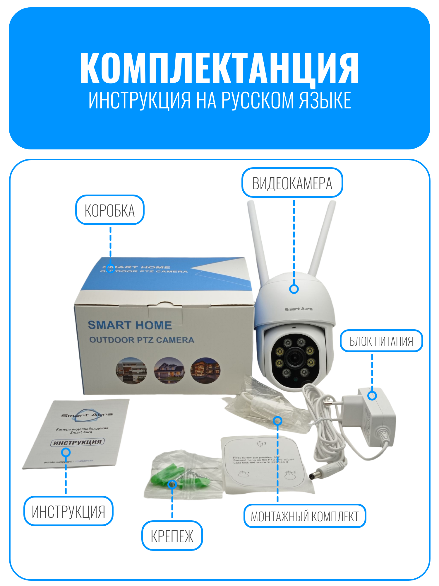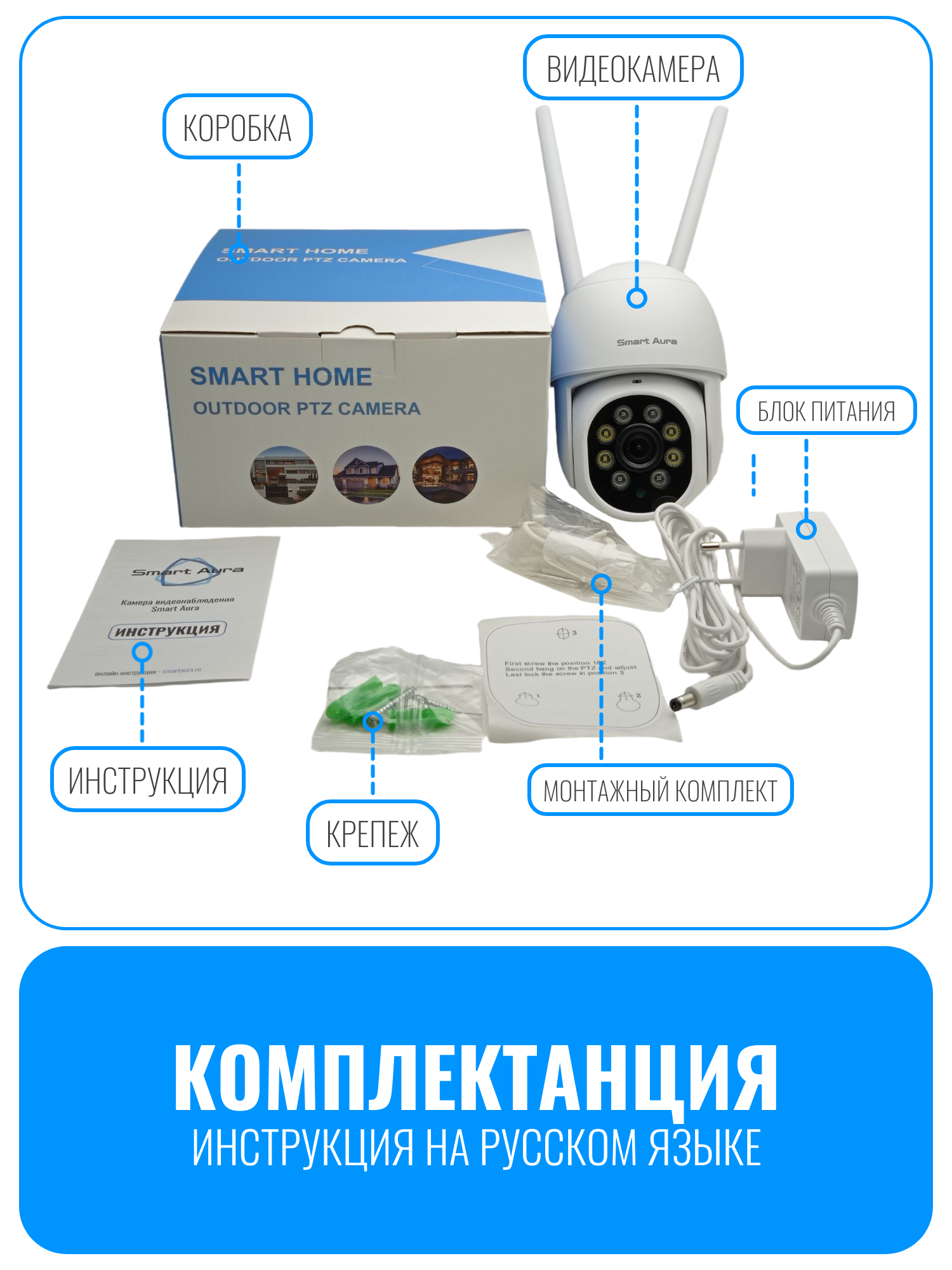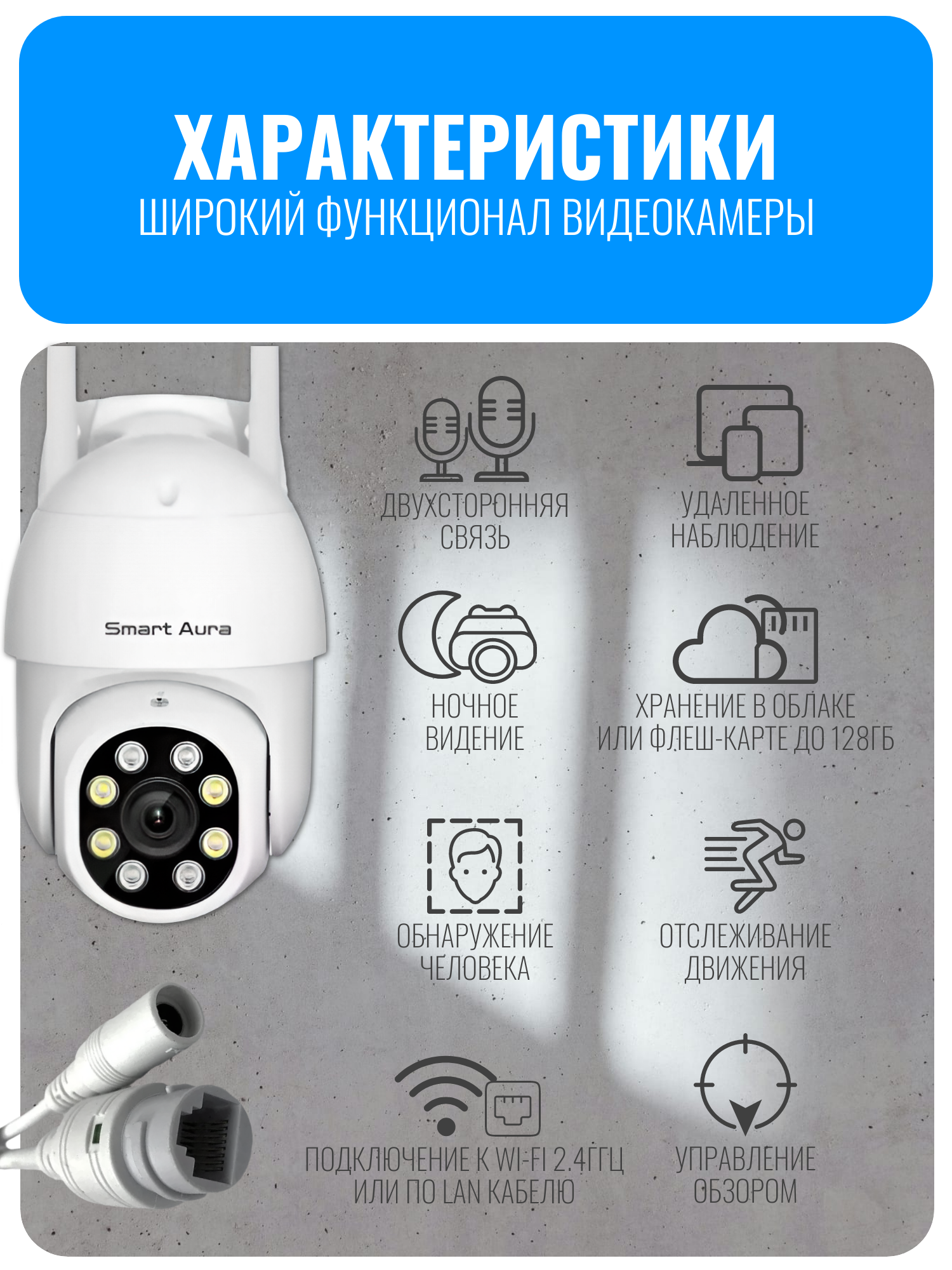 камера видеонаблюдения, wifi камера, уличная wifi камера, поворотная камера видеонаблюдения, видеокамера smart aura