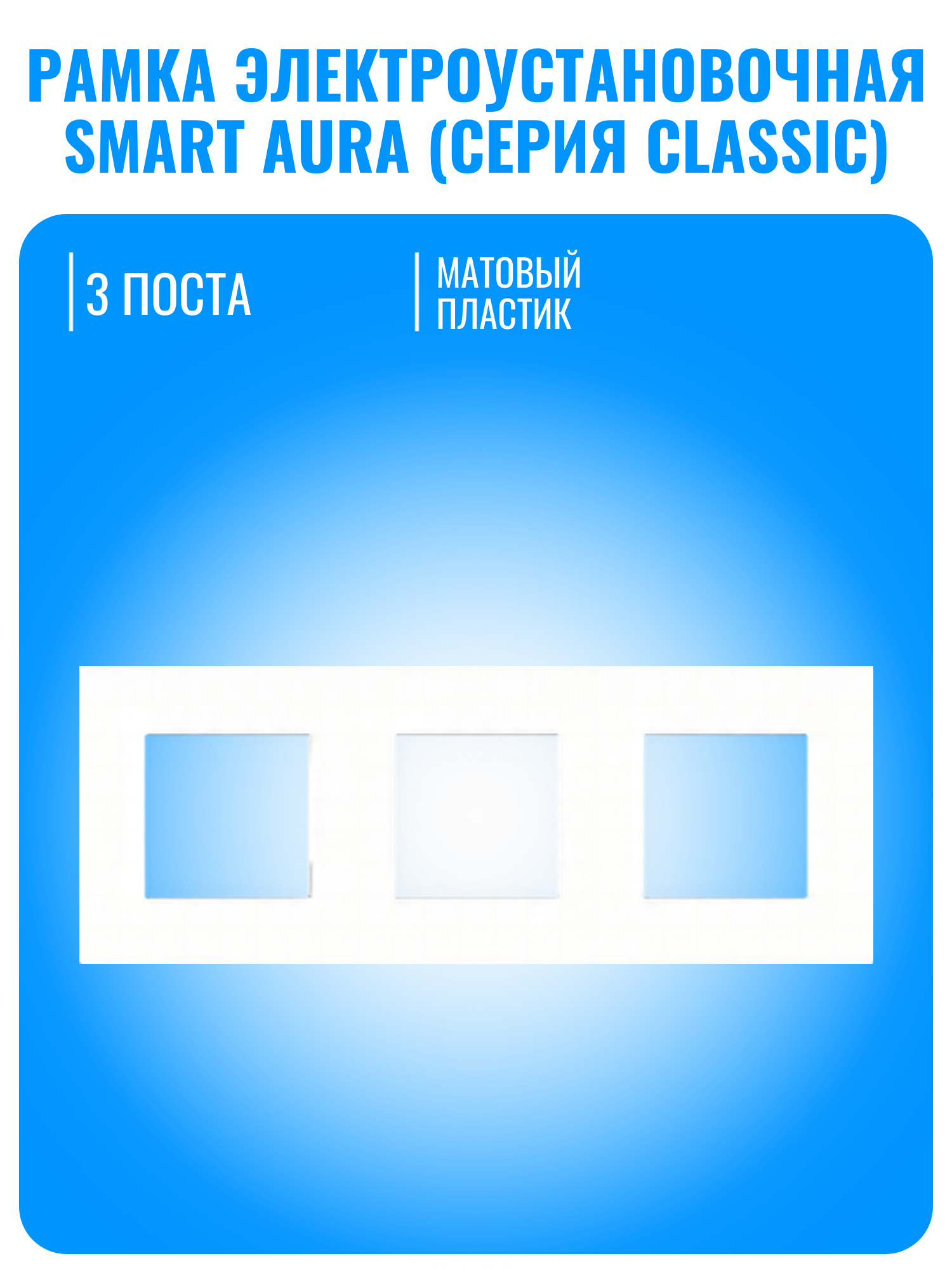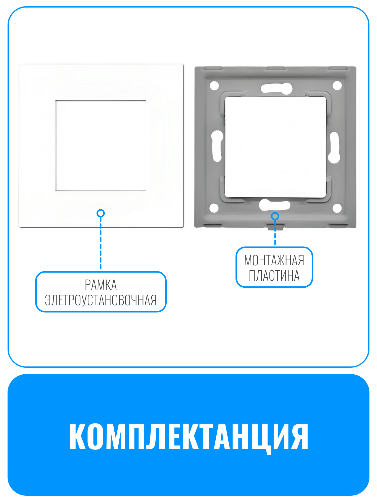Рамка предназначена для установки устройств как в горизонтальном, так и в вертикальном положении. В комплекте с рамкой поставляется металлическая монтажная пластина. Эта рамка подходит для различных электроустановочных изделий бренда Smart Aura серии Classic.