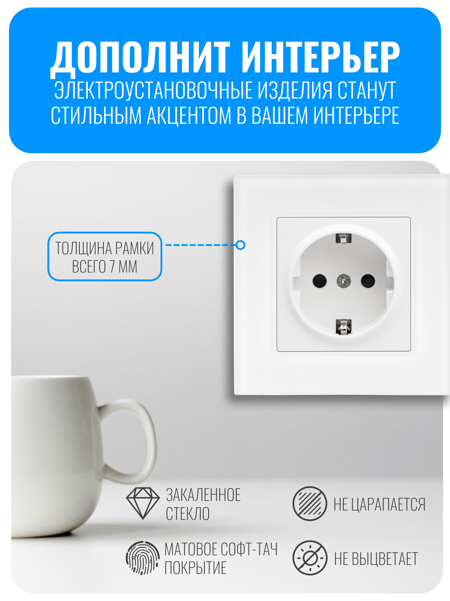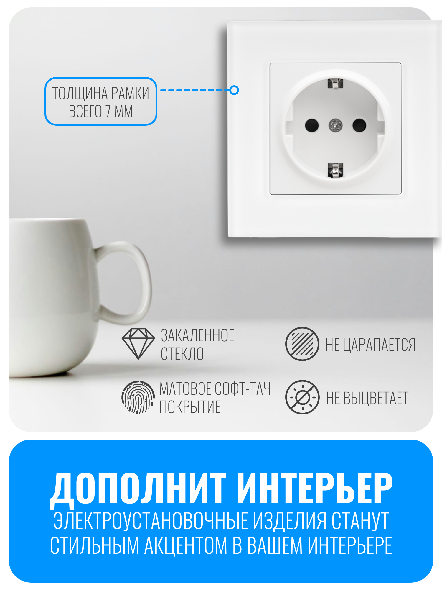 Поверхность рамки имеет специальное софт-тач покрытие, которое придает изделию приятные тактильные ощущения и предотвращает появление отпечатков пальцев. Софт-тач покрытие позволяет рамке выглядеть стильно и современно, добавляя элегантность в интерьер помещения.