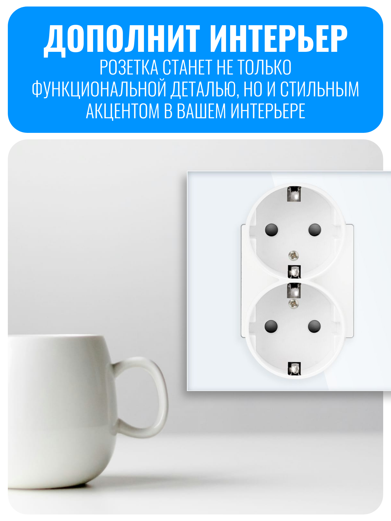 Розетку можно установить как вертикально, так и горизонтально, что упрощает её интеграцию в любой интерьер. В комплекте поставляется только розеточный модуль, рамку нужно приобрести отдельно. Это позволяет выбрать рамку подходящего цвета и материала, чтобы она гармонично вписывалась в дизайн помещения.