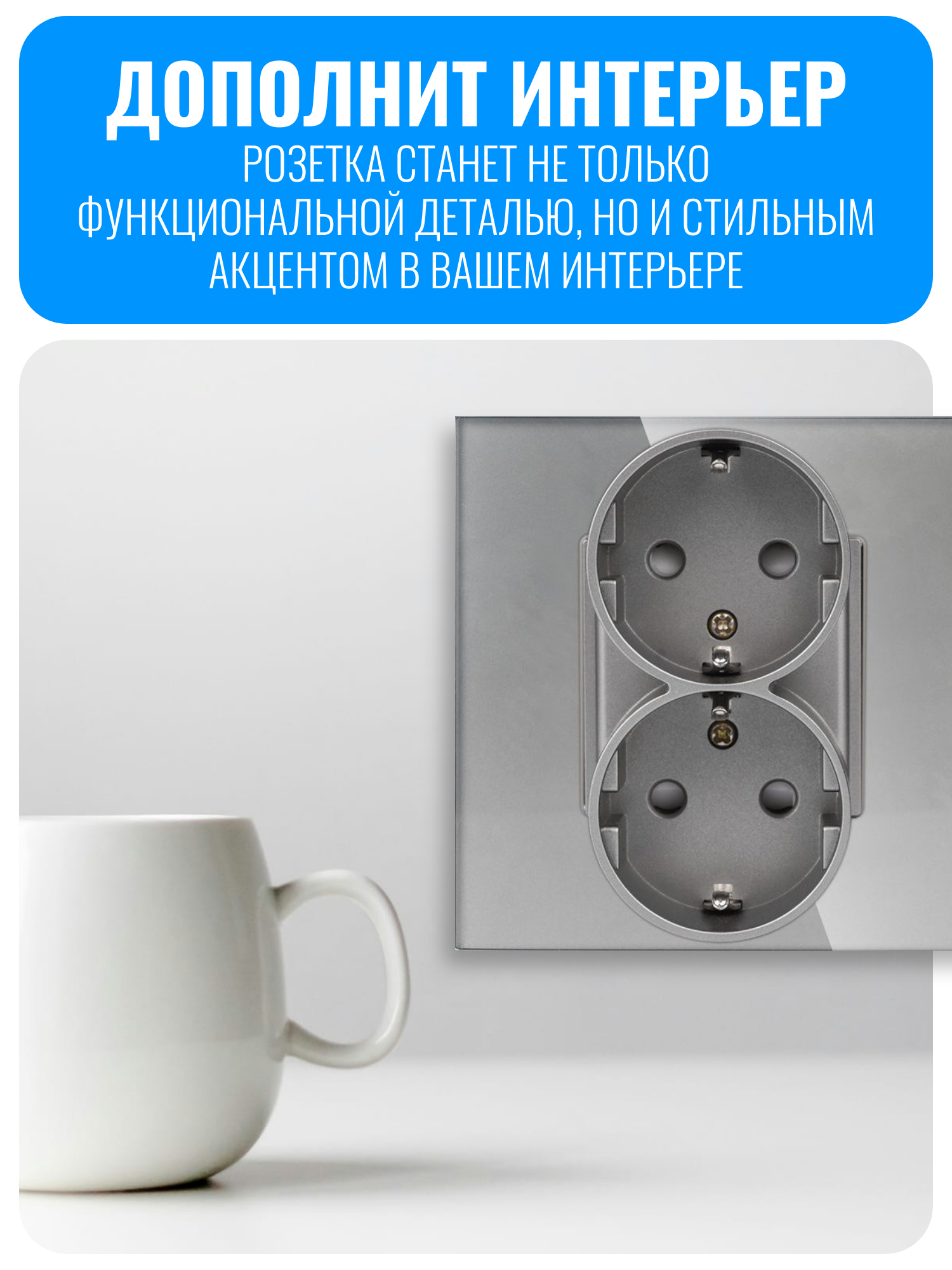 Розетку можно установить как вертикально, так и горизонтально, что упрощает её интеграцию в любой интерьер. В комплекте поставляется только розеточный модуль, рамку нужно приобрести отдельно. Это позволяет выбрать рамку подходящего цвета и материала, чтобы она гармонично вписывалась в дизайн помещения.