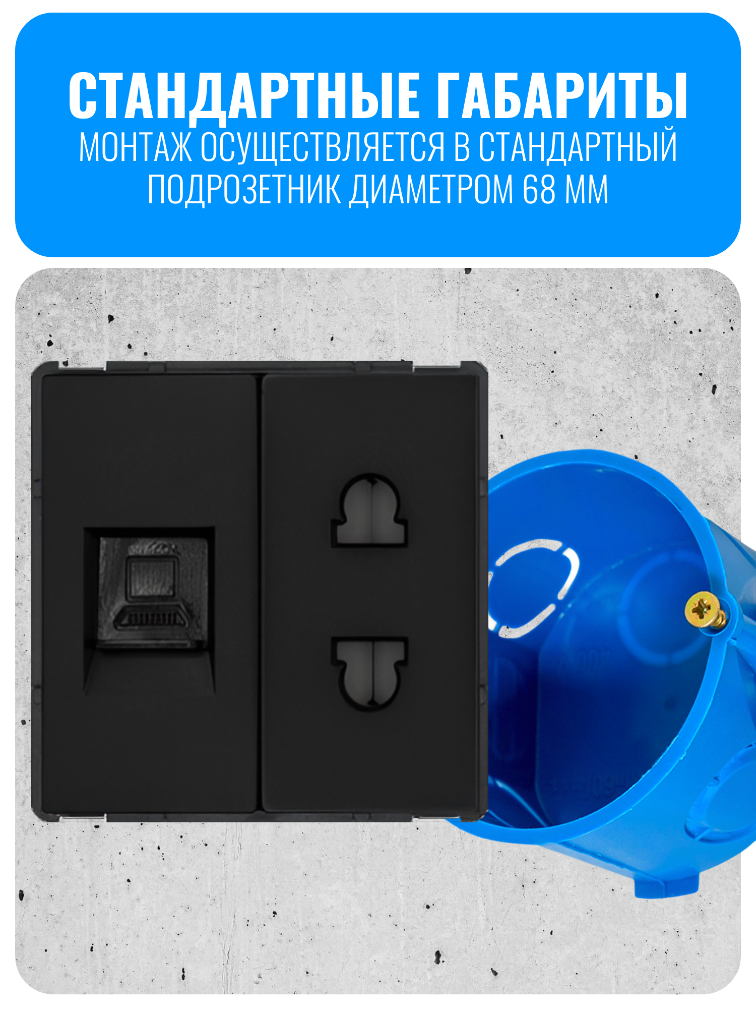 Розетку можно установить как вертикально, так и горизонтально, что упрощает её интеграцию в любой интерьер. В комплекте поставляется только розеточный модуль, рамку нужно приобрести отдельно. Это позволяет выбрать рамку подходящего цвета и материала, чтобы она гармонично вписывалась в дизайн помещения.