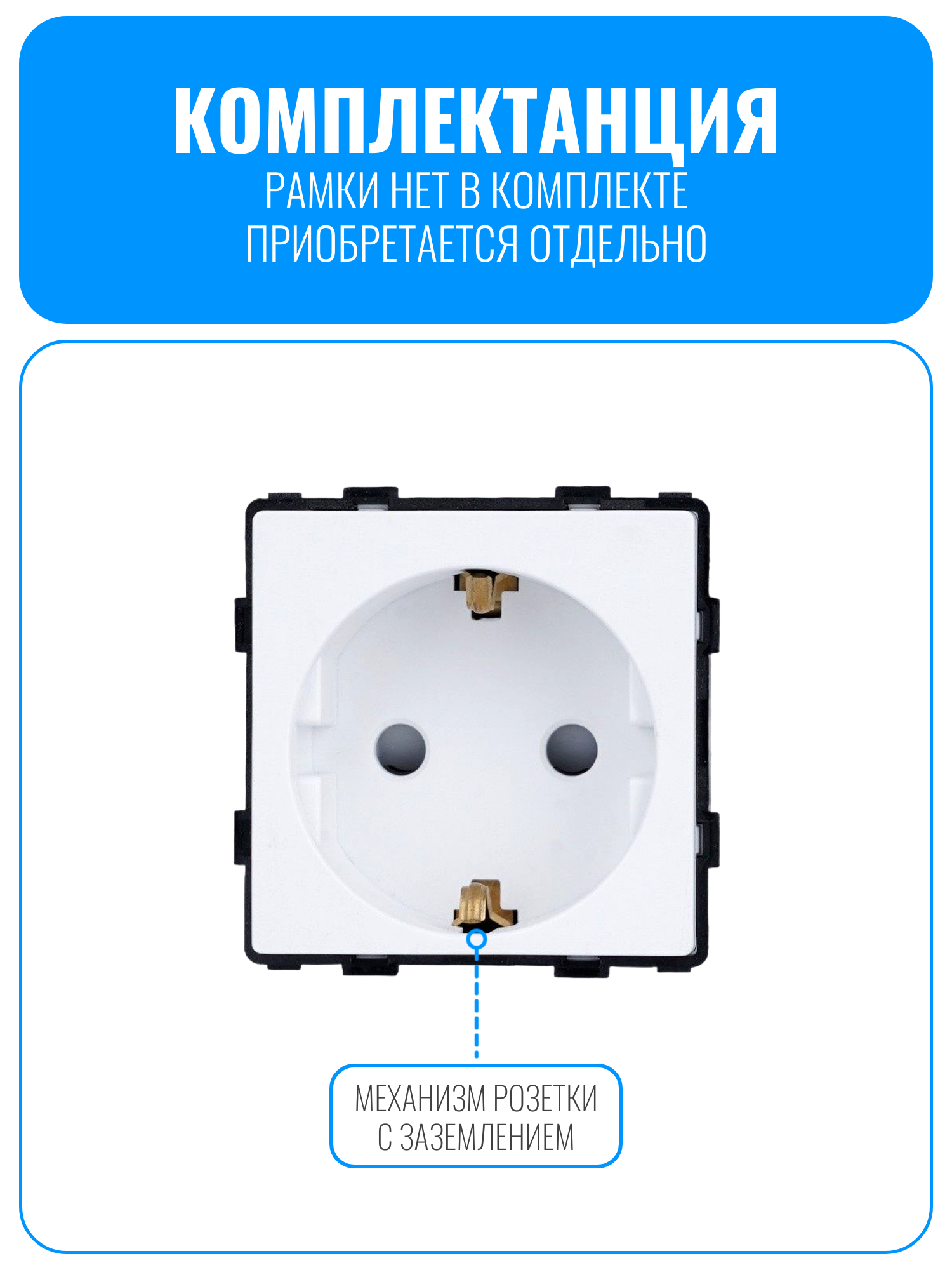 Розетку можно установить как вертикально, так и горизонтально, что упрощает её интеграцию в любой интерьер. В комплекте поставляется только розеточный модуль, рамку нужно приобрести отдельно. Это позволяет выбрать рамку подходящего цвета и материала, чтобы она гармонично вписывалась в дизайн помещения.