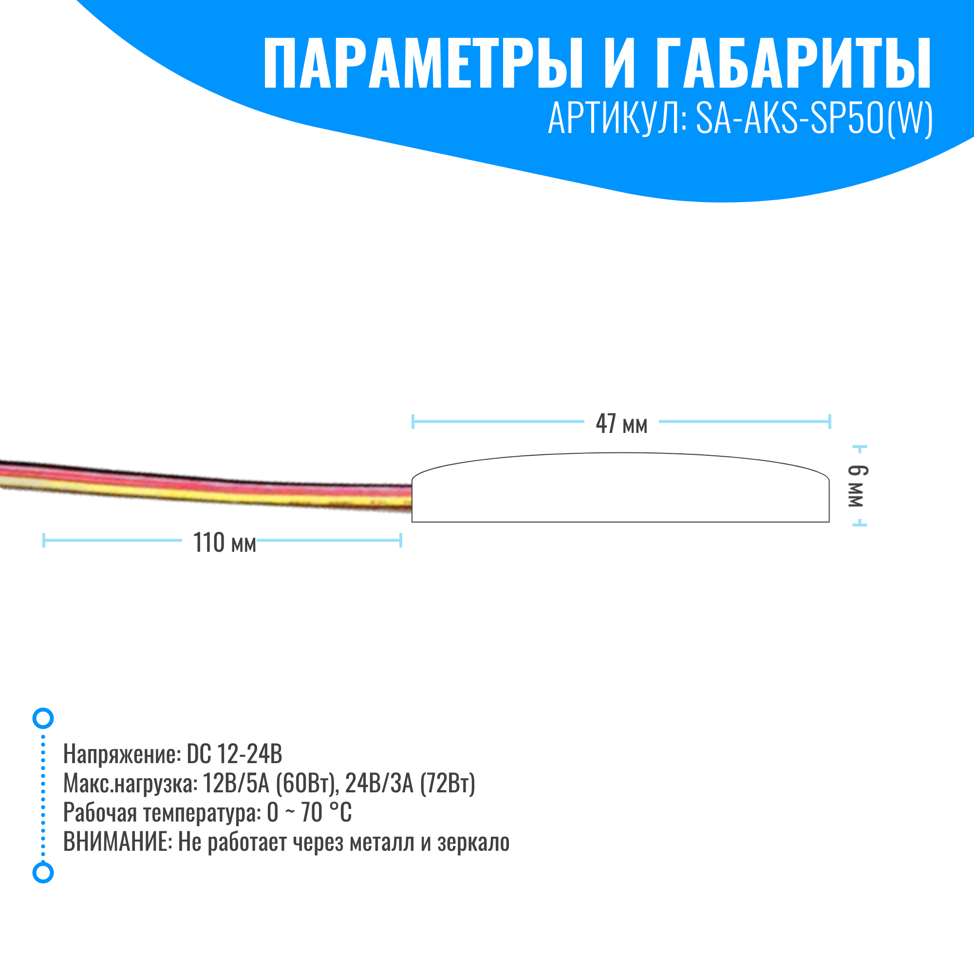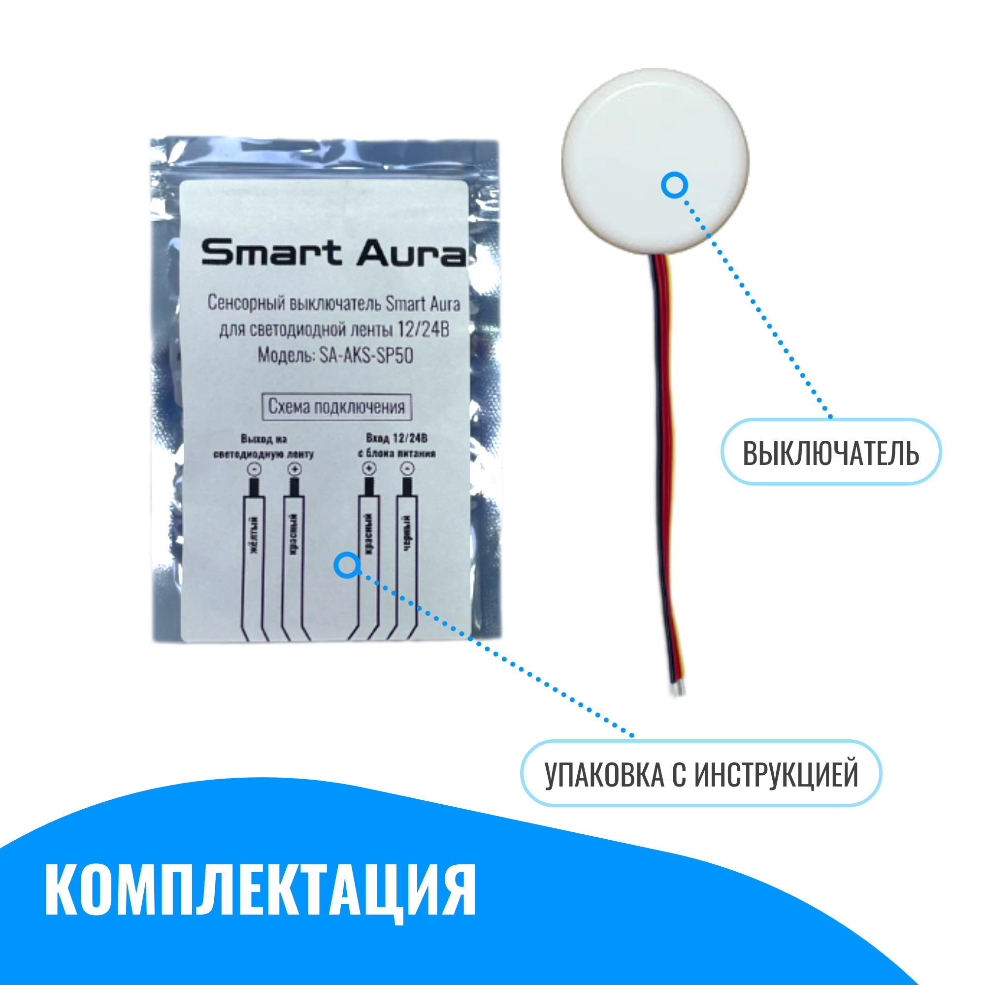 Выключатель для светодиодной ленты Smart Aura SA-AKS-SP50 - представляет собой компактный сенсорный выключатель, который легко устанавливается на различные поверхности, такие как дерево, ДСП, стекло или акрил. Скрытый монтаж для управления светодиодной лентой. Это делает его удобным и практичным решением для создания комфортной атмосферы в вашем доме или офисе.