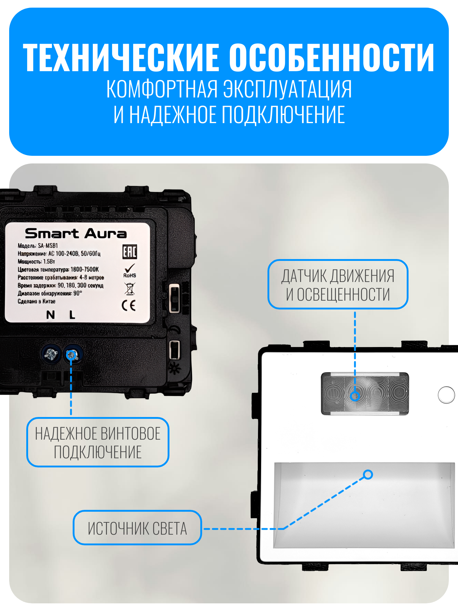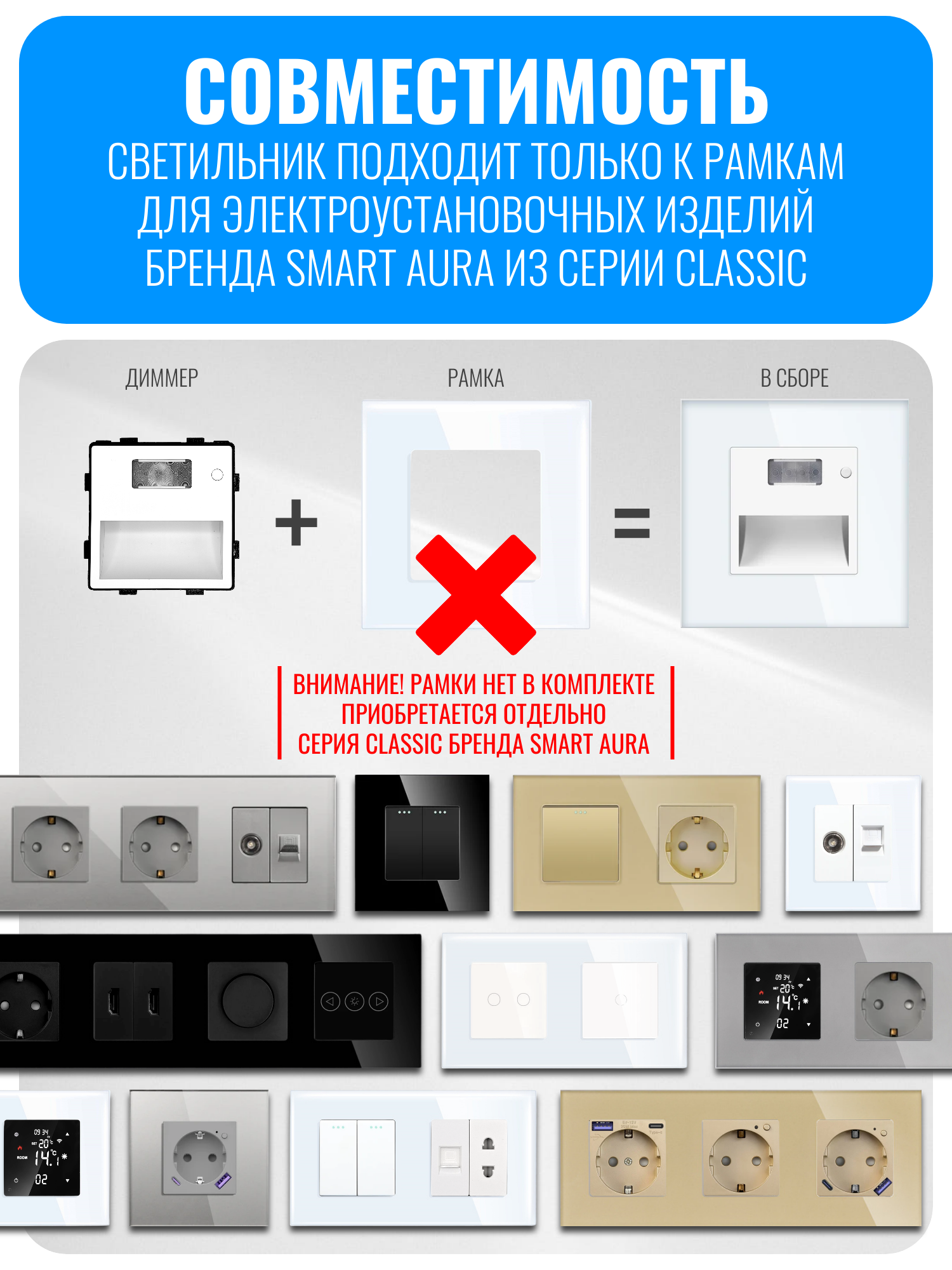 Внимание! Рамки нет в комплекте, приобретается отдельно. Совместимо с рамкой Smart Aura серии Classic: SA-FGU, SA-FPU, SA-FAU