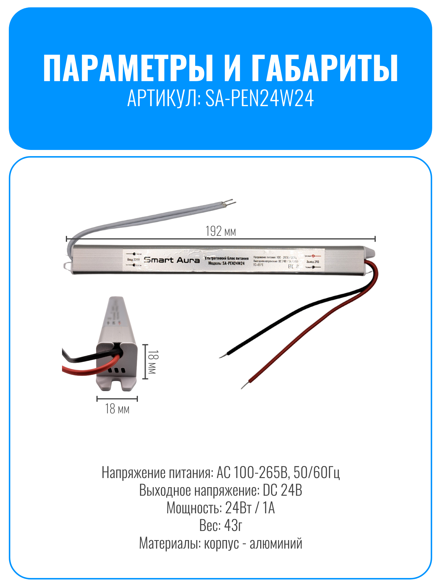 блок питания, ультратонкий блок питания, компактный блок питания, блок питания карандаш, блок питания карандашного типа, блок питания smart aura