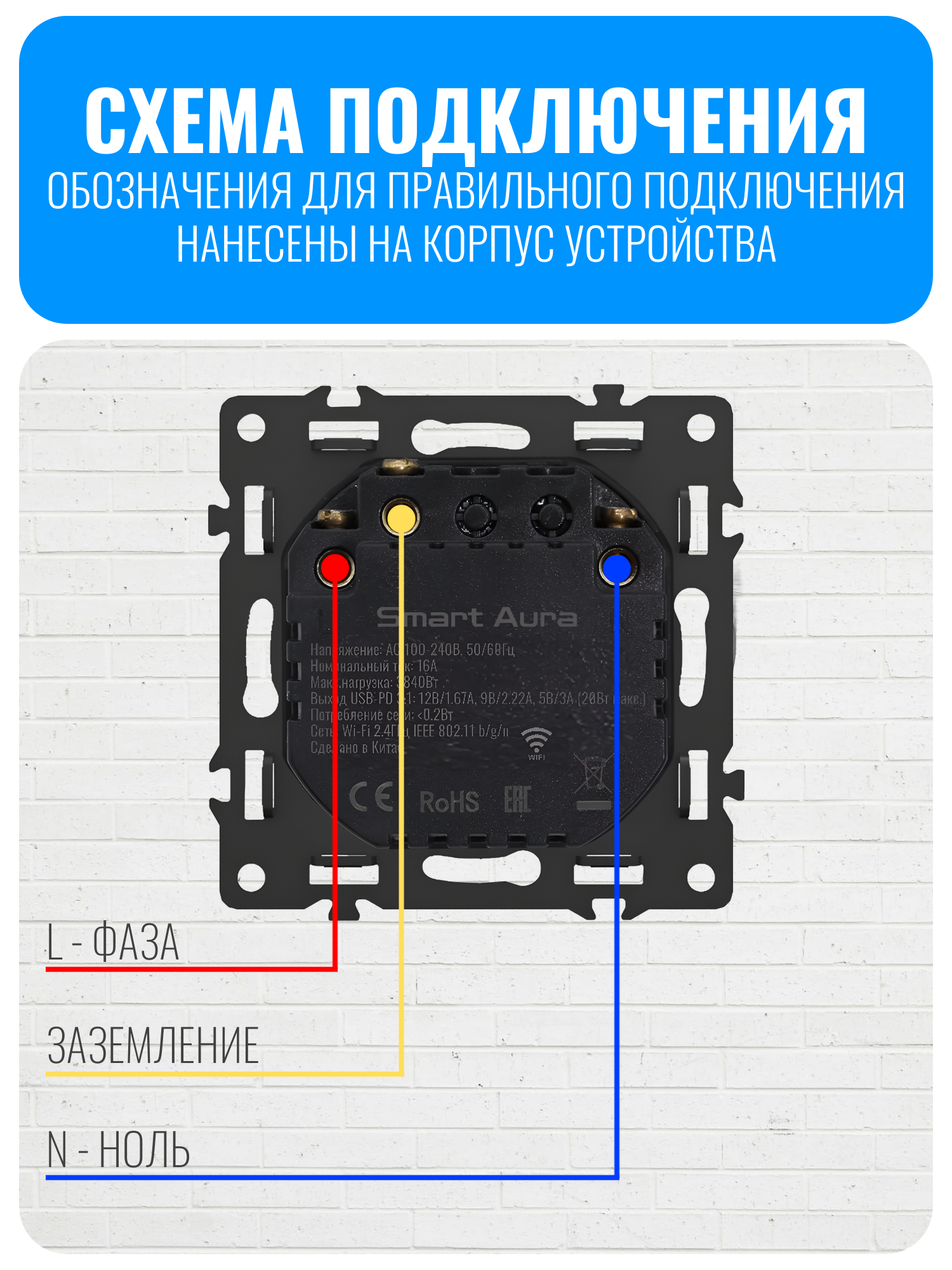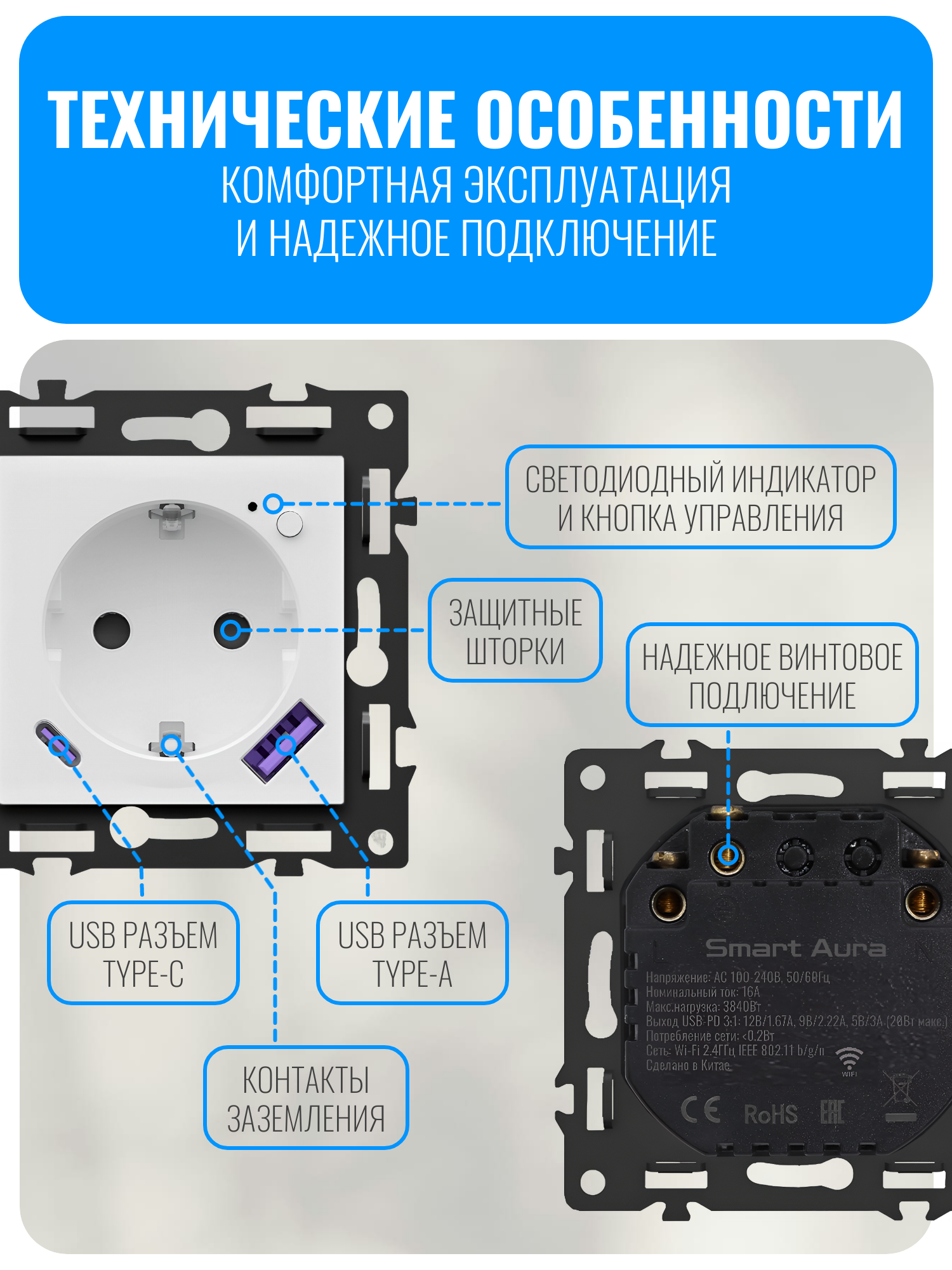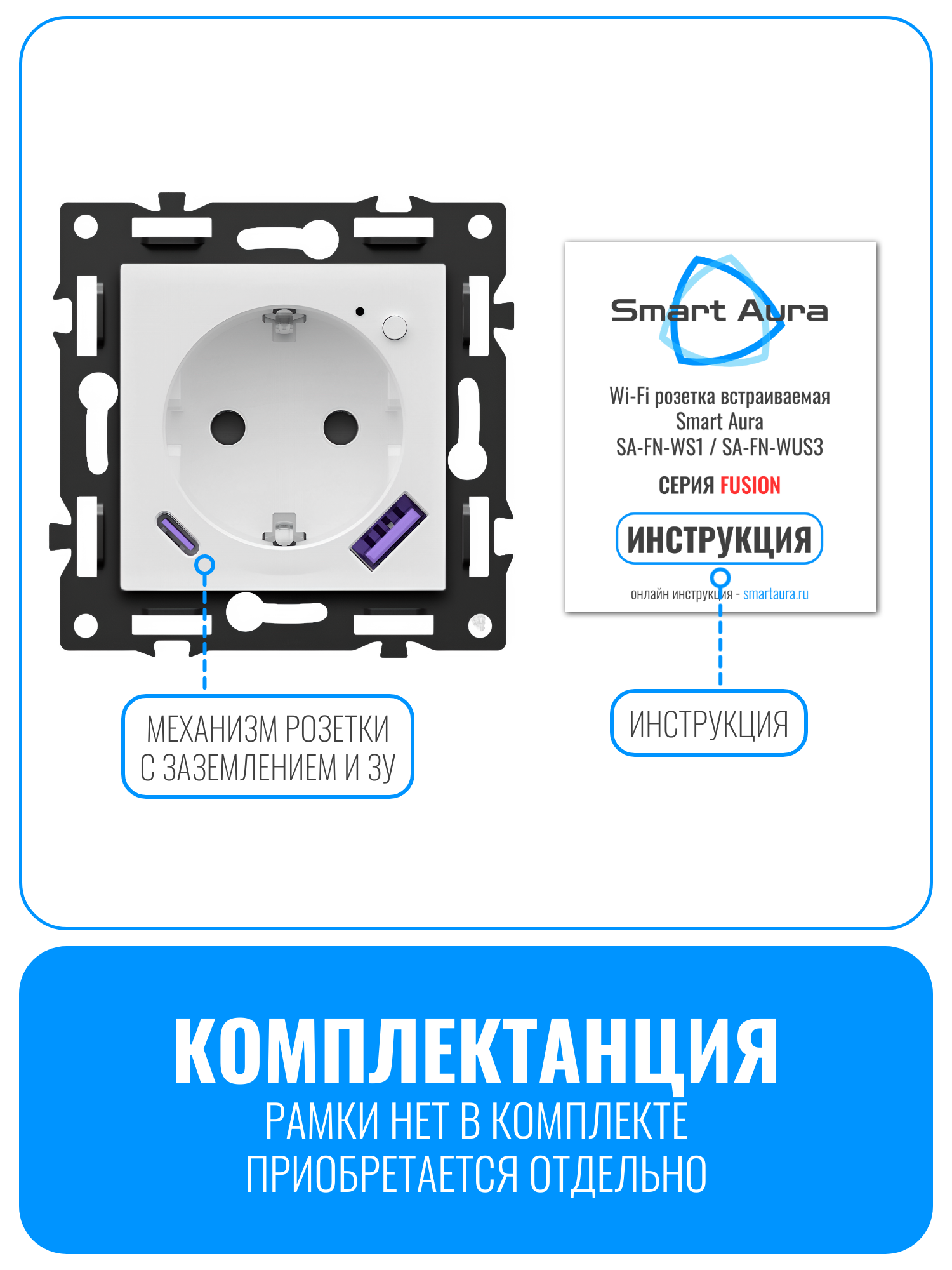 Внимание! Рамки нет в комплекте, приобретается отдельно. Совместимо с рамкой Smart Aura серии Fusion: SA-FN-GS