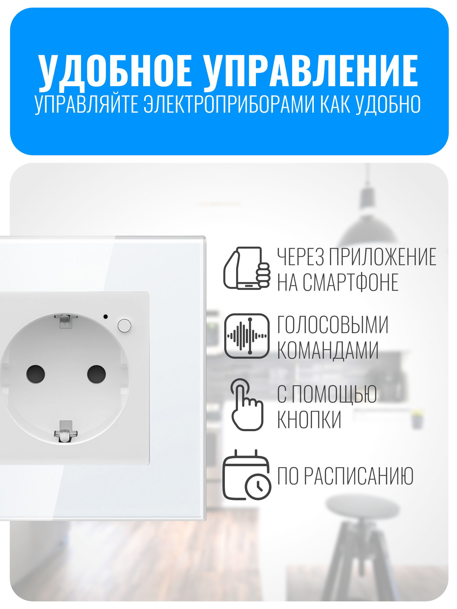 Для работы розетка подключается к Wi-Fi сети на частоте 2,4 ГГц и не требует отдельного хаба. Управлять устройством можно через приложения Smart Life и DIGMA SmartLife. Розетка поддерживает интеграцию с голосовыми ассистентами Яндекс Алиса, VK Маруся и Сбер Салют, что делает управление удобным и быстрым.