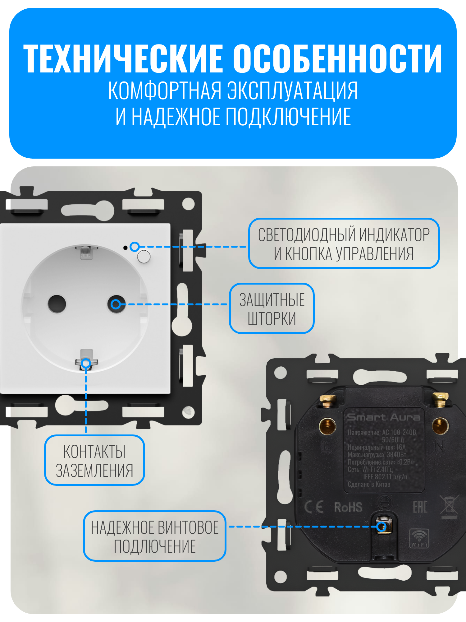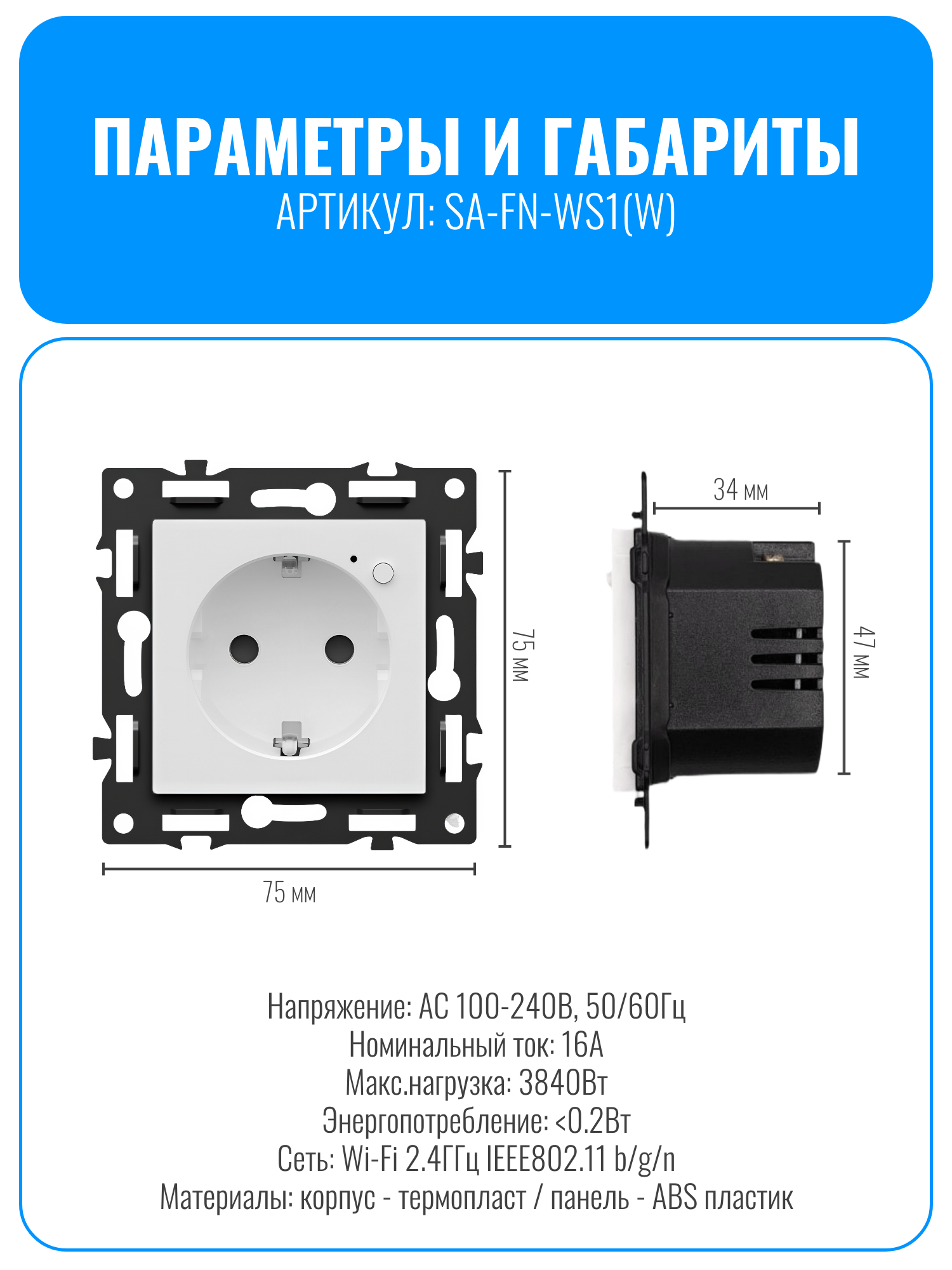 Умная Wi-Fi розетка Smart Aura SA-FN-WS1 из серии Fusion предназначена для автоматизации работы бытовых электроприборов. С помощью этой розетки можно дистанционно включать и выключать устройства, а также настраивать таймеры и индивидуальные сценарии. Управление возможно тремя способами: с помощью кнопки на корпусе, через мобильное приложение или голосовыми командами. Название серии Fusion отражает её основную особенность — сочетание традиционных и умных устройств в единой системе.