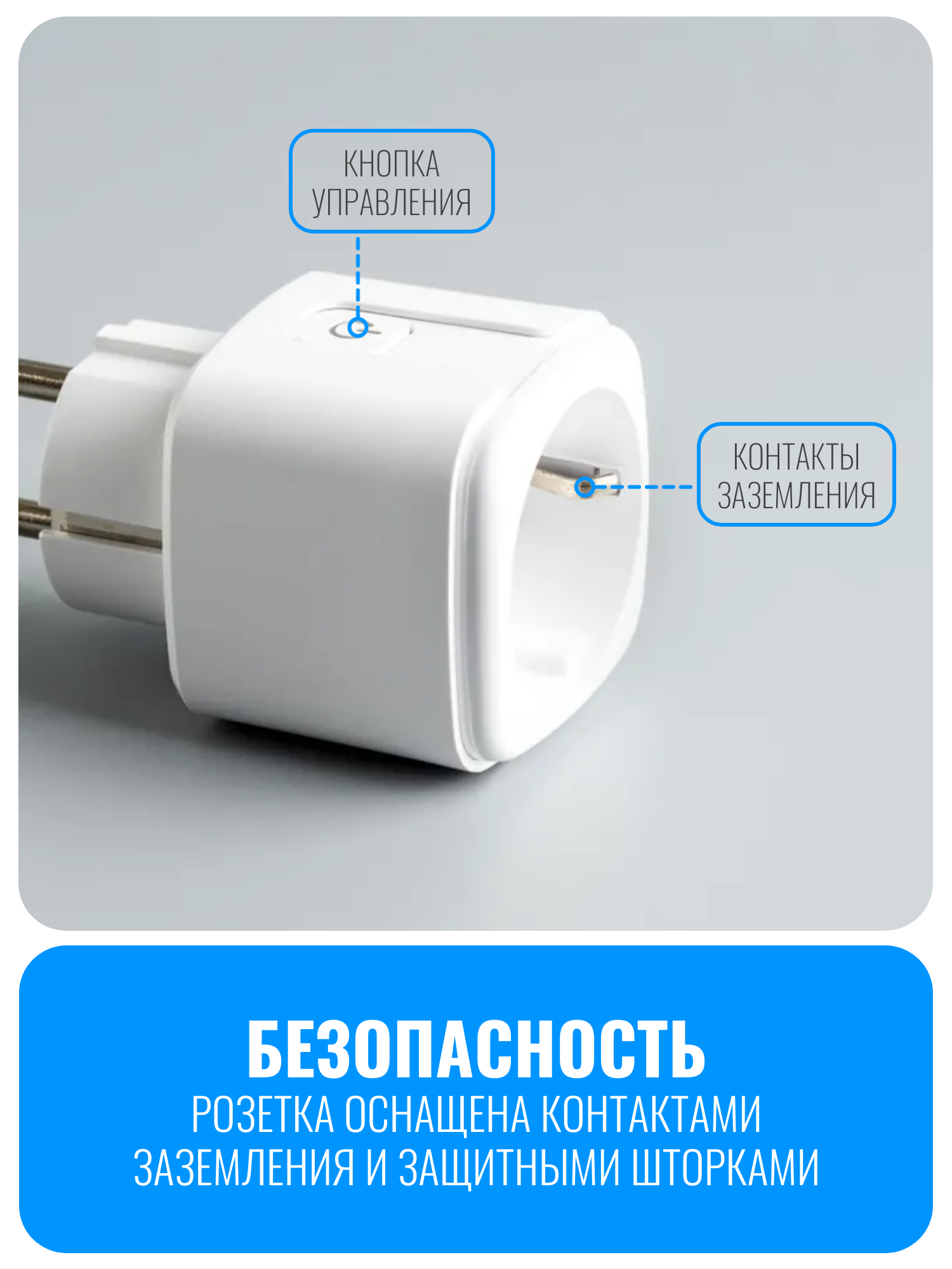 Розетка обладает защитой от перезарядки, что означает, что если мощность превышена, она автоматически отключится, чтобы защитить ваши электроприборы и продлить их срок службы. Вы можете настраивать собственные сценарии, включая и выключая подключенные устройства в указанное время, что позволяет существенно экономить на электроэнергии.
