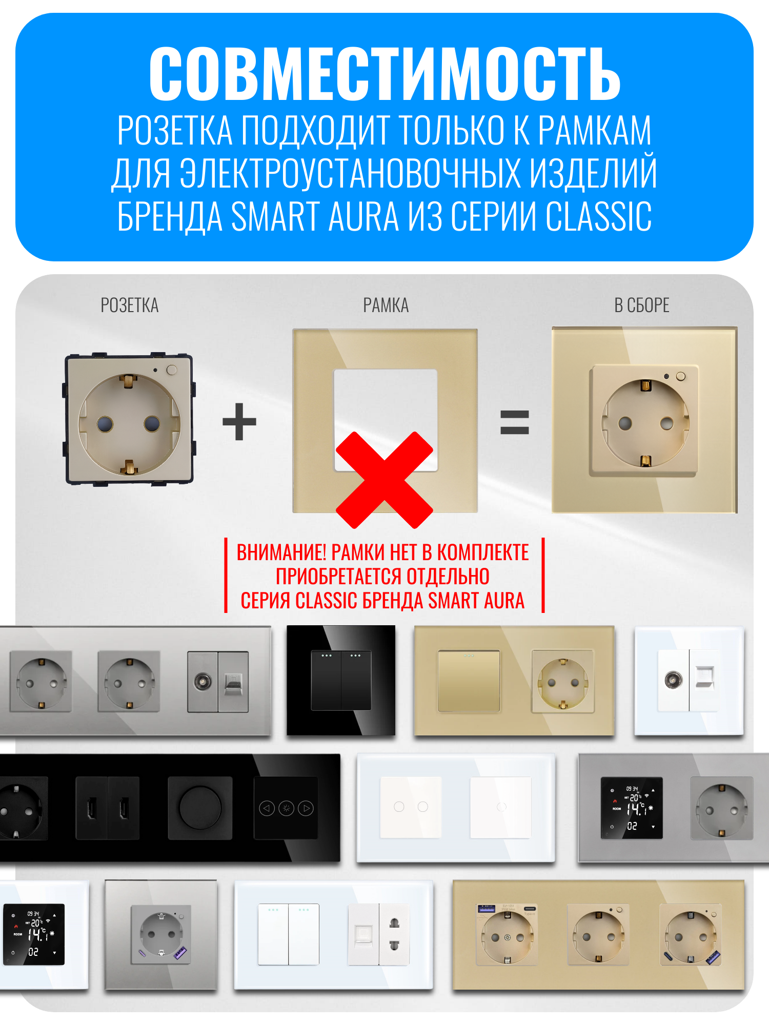 Внимание! Рамки нет в комплекте, приобретается отдельно. Совместимо с рамкой Smart Aura серии Classic: SA-FGU, SA-FPU, SA-FAU