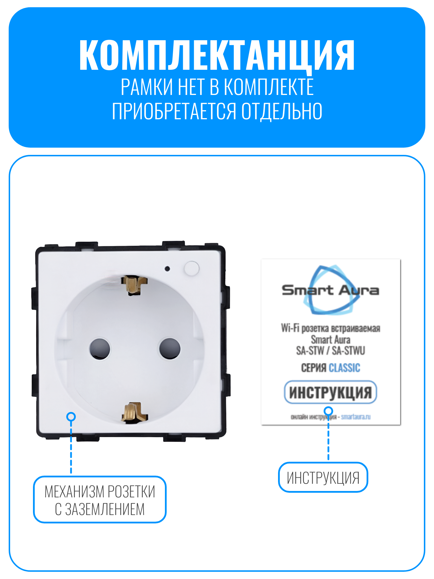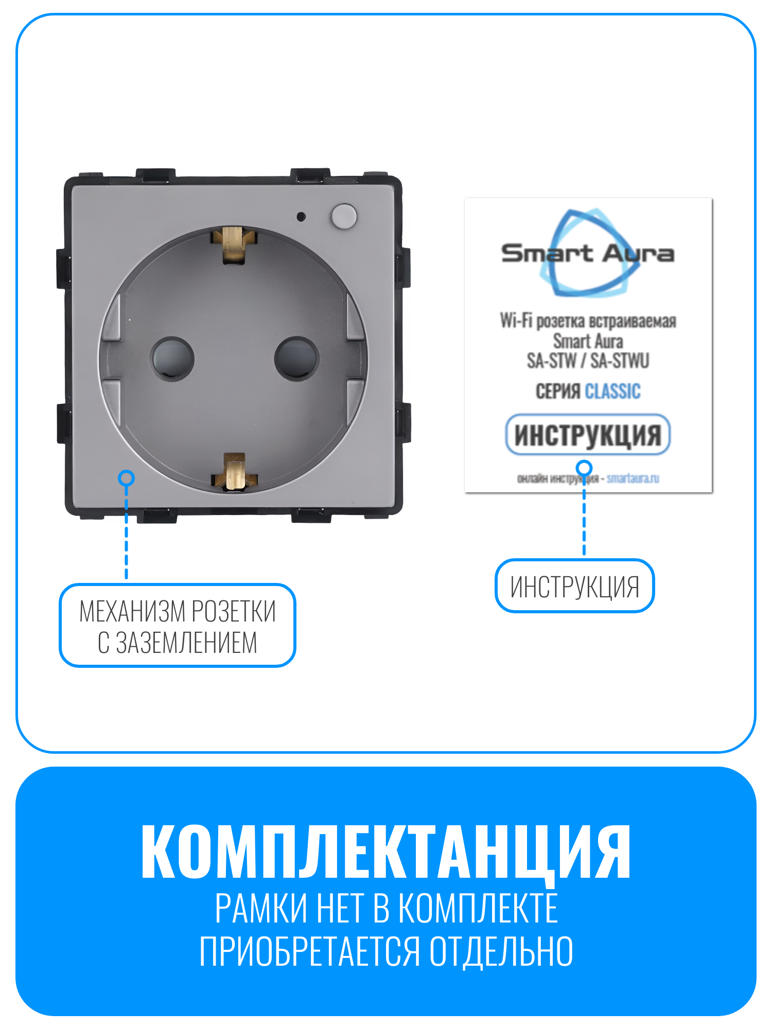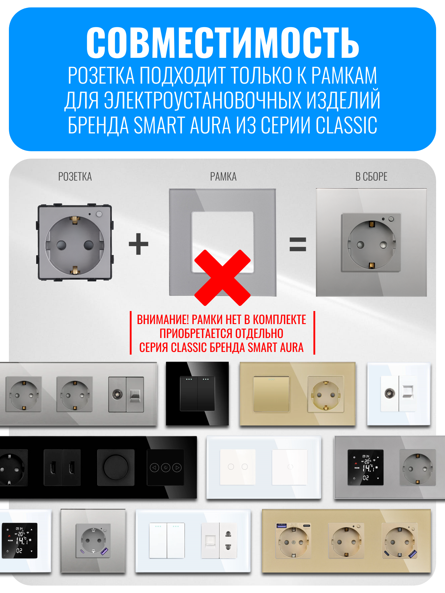 Внимание! Рамки нет в комплекте, приобретается отдельно. Совместимо с рамкой Smart Aura серии Classic: SA-FGU, SA-FPU, SA-FAU