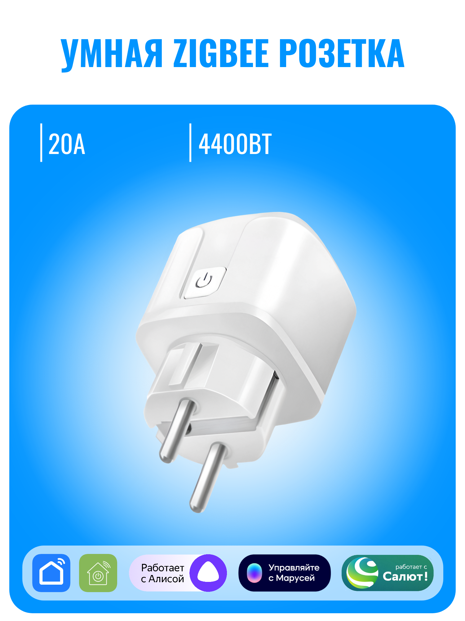 Умная ZigBee розетка Smart Aura SAZ-PL20 - это идеальное решение для вашей системы умного дома. Благодаря своей мощности 20А/4400Вт, она позволяет подключать высокомощное оборудование, такое как водонагреватели, обогреватели, кондиционеры и другие электроприборы. Кроме того, она также подходит для подключения комнатных ламп или других устройств.
