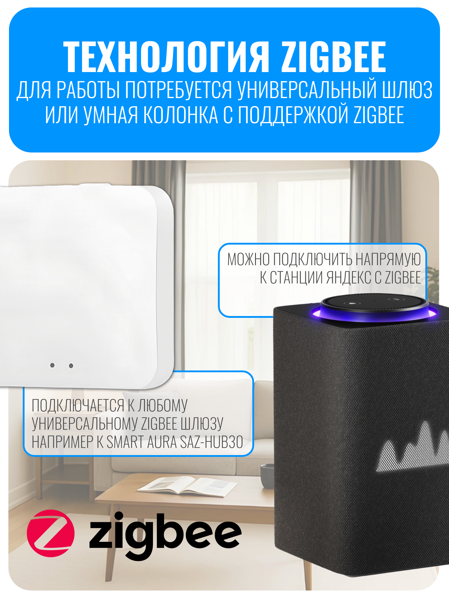 Для подключения потребуется универсальный ZigBee шлюз (без ограничений на бренд устройства) или колонка голосового помощника со встроенным ZigBee шлюзом. Для управления подойдут приложения Smart Life и DIGMA SmartLife. Устройство поддерживает интеграцию с голосовыми ассистентами Яндекс Алиса, VK Маруся и Сбер Салют, что обеспечивает удобство использования и быстрое реагирование на ваши команды.