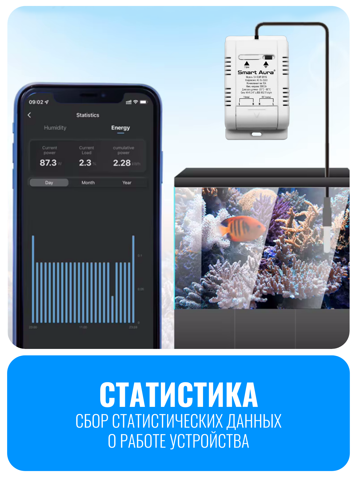 Умное WiFi реле с датчиком температуры Smart Aura SA-TEMP-DIY16 - современное и удобное устройство для управления электроприборами через смартфон. Благодаря встроенному температурному датчику, вы можете контролировать работу приборов, подключенных к сети 220В. Это особенно полезно при управлении нагревателем воды в аквариуме или электропечью в сауне, где важна точная температура.