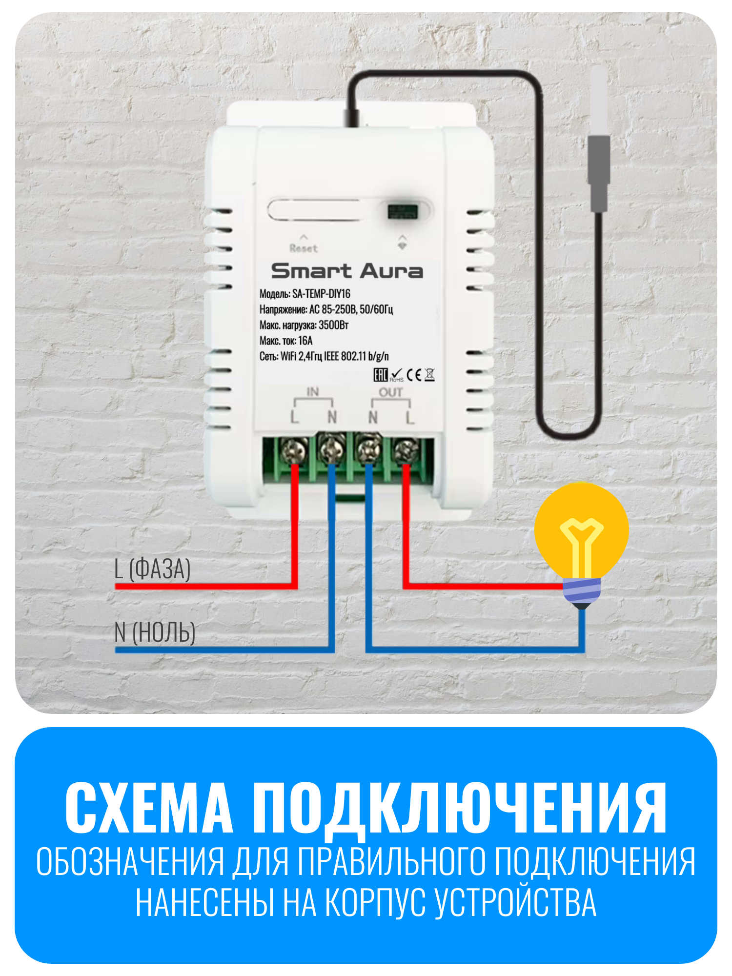 Важно: для подключения требуется наличие фазы и нуля. Работа без нуля невозможна. Будьте внимательны при установке, так как неправильное подключение может привести к поломке устройства.
