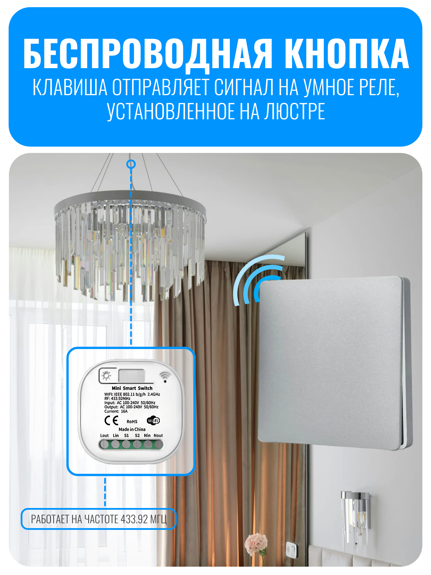кинетический выключатель, радиовыключатель, беспроводной выключатель, wifi выключатель, умный выключатель