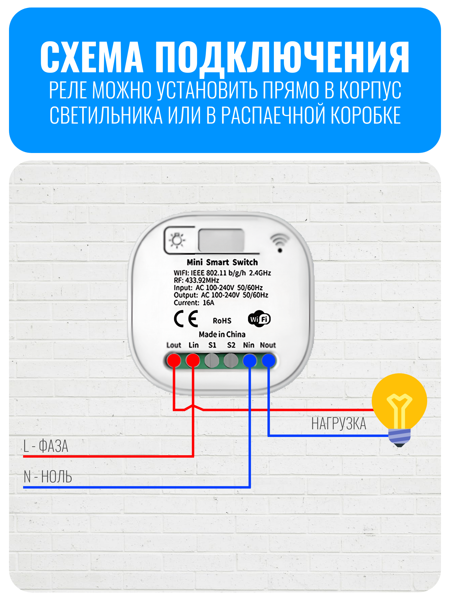 Внимание! Для работы реле необходимо наличие фазы и ноля. Подключение без ноля не допускается. При неправильном подключении возможно повреждение устройства.