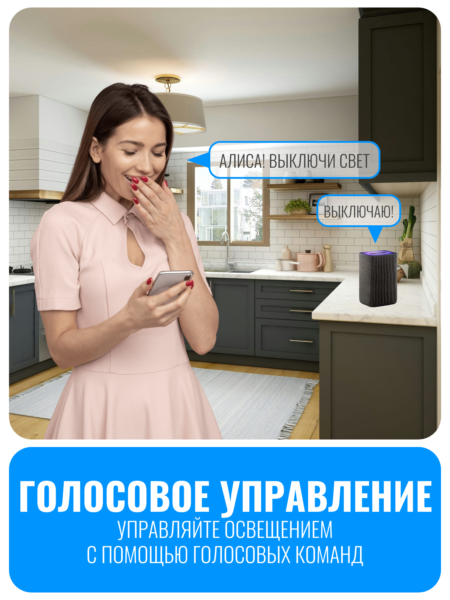Умное реле подключается к домашней WiFi-сети с частотой 2,4 ГГц. Управление и настройка осуществляются через приложения Smart Life или DIGMA SmartLife. Устройство поддерживает работу с голосовыми помощниками: Яндекс Алисой, VK Марусей и Сбер Салютом. Это позволяет управлять светом с помощью голосовых команд.