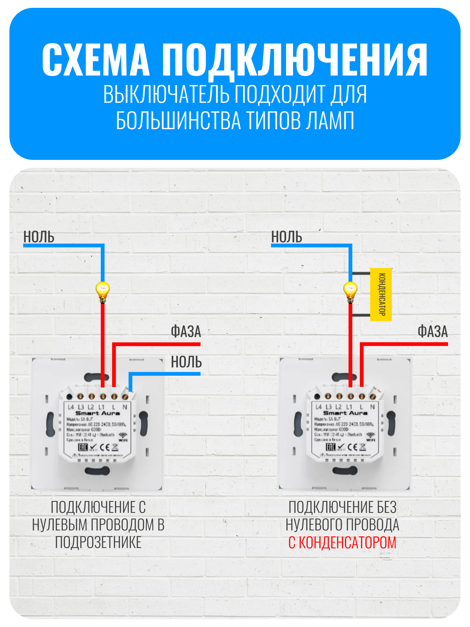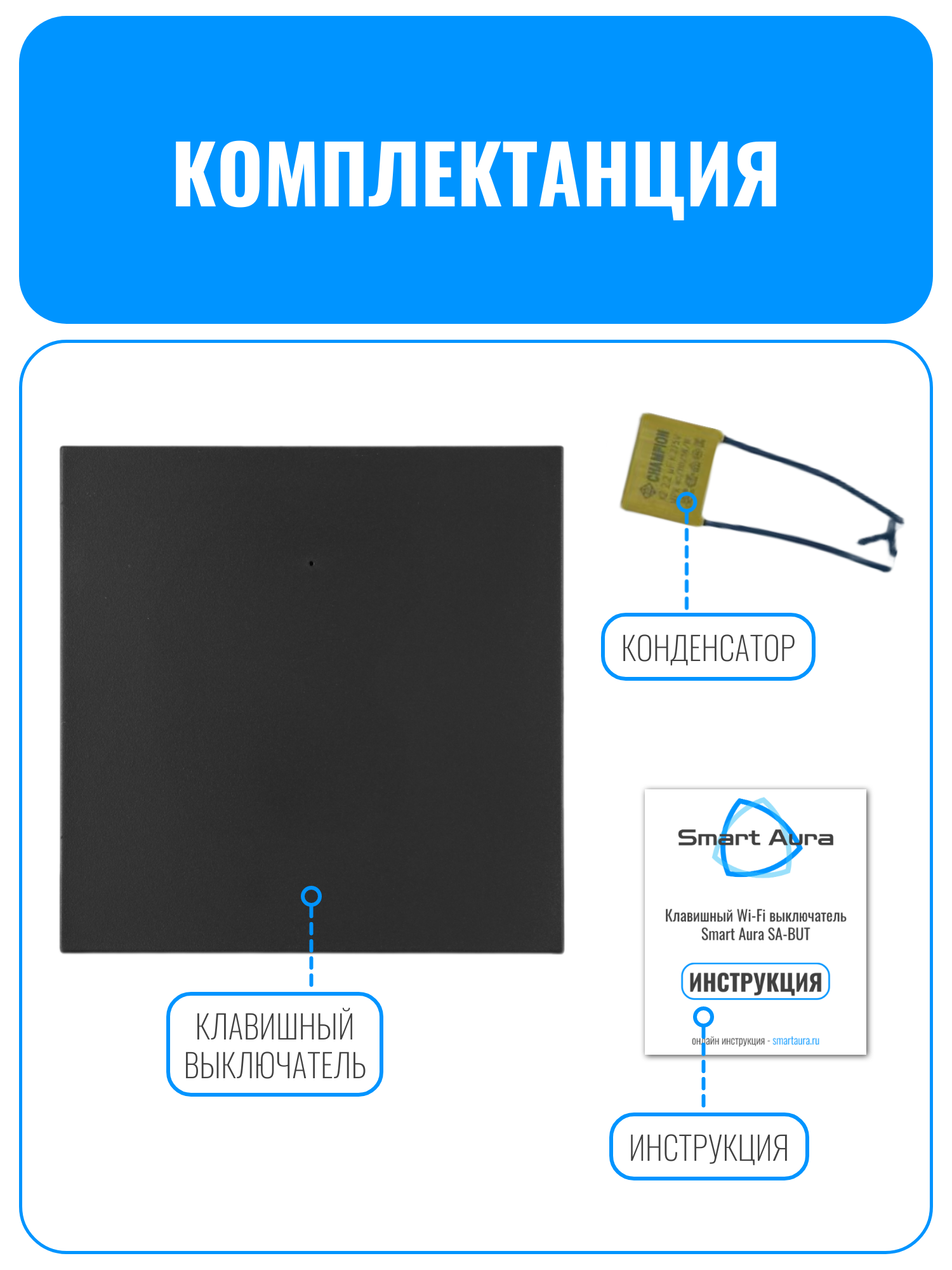 Умный клавишный Wi-Fi выключатель Smart Aura серии SA-BUT - это стильный и функциональный выключатель, который позволяет управлять светом с помощью мобильного приложения или голосового помощника.