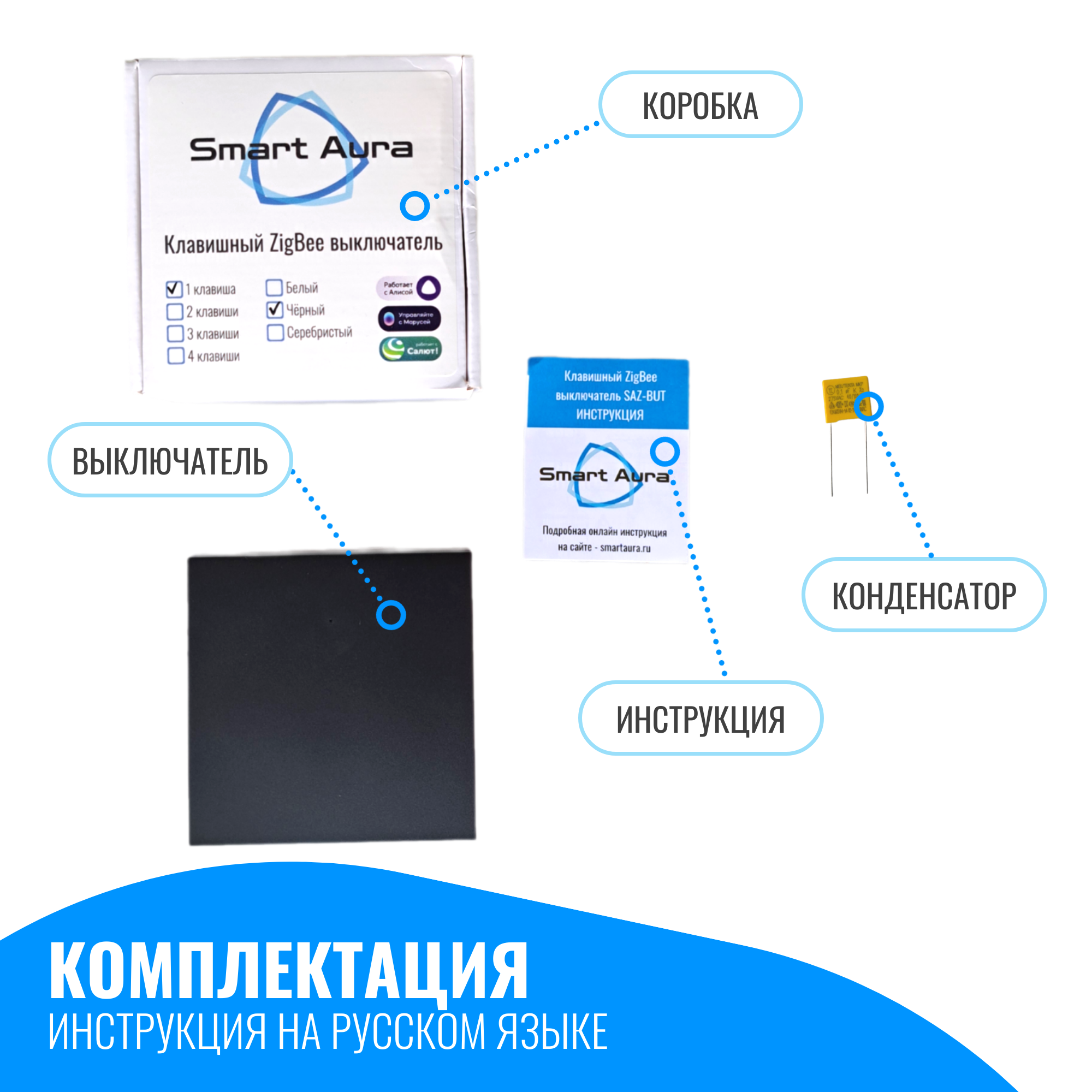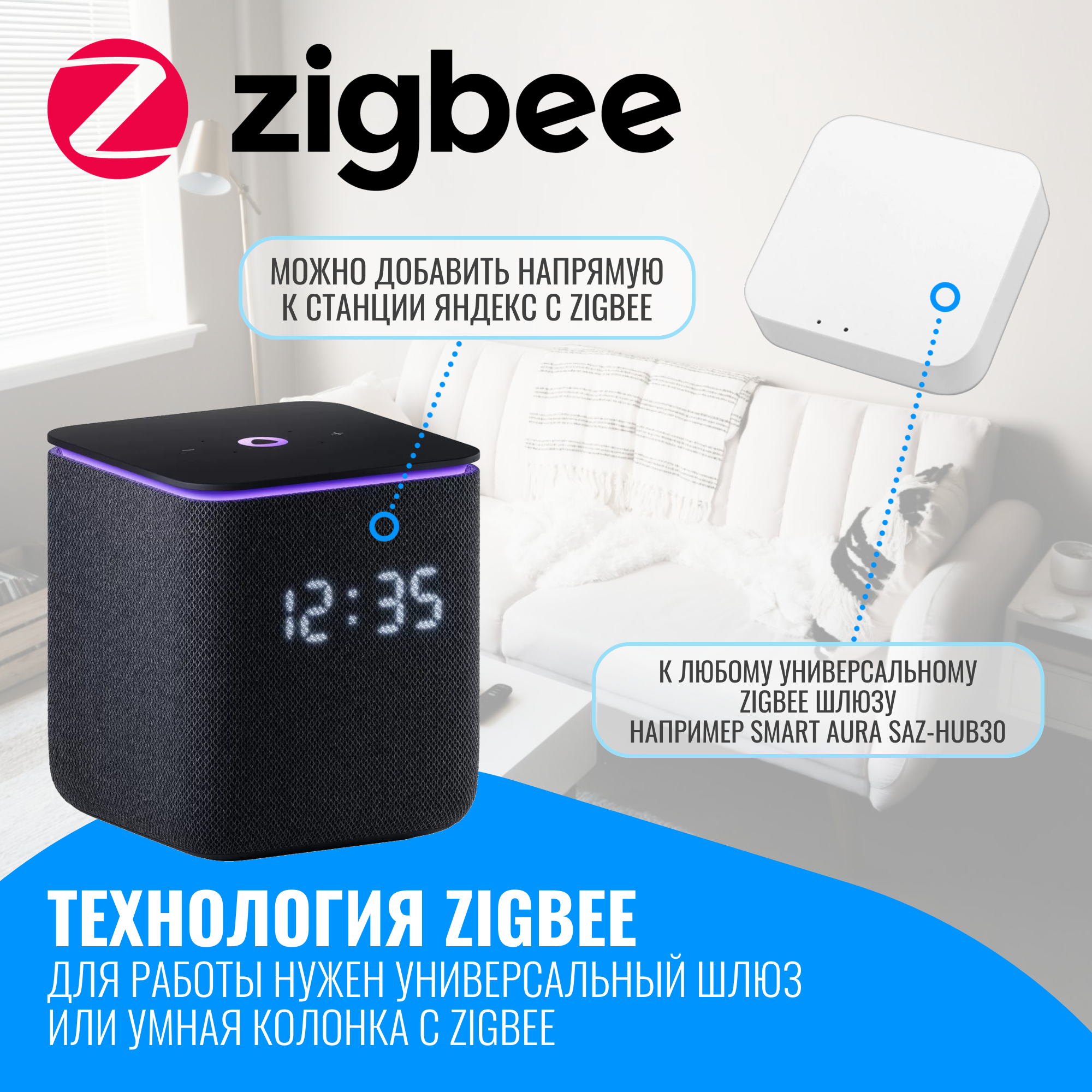 Умный клавишный ZigBee выключатель Smart Aura серии SAZ-BUT - это стильный и функциональный выключатель, который позволяет управлять светом с помощью мобильного приложения или голосового помощника.
