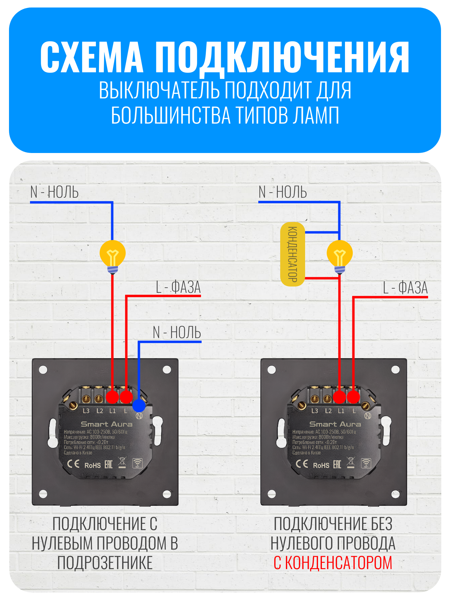 Выключатель, конденсатор, инструкция