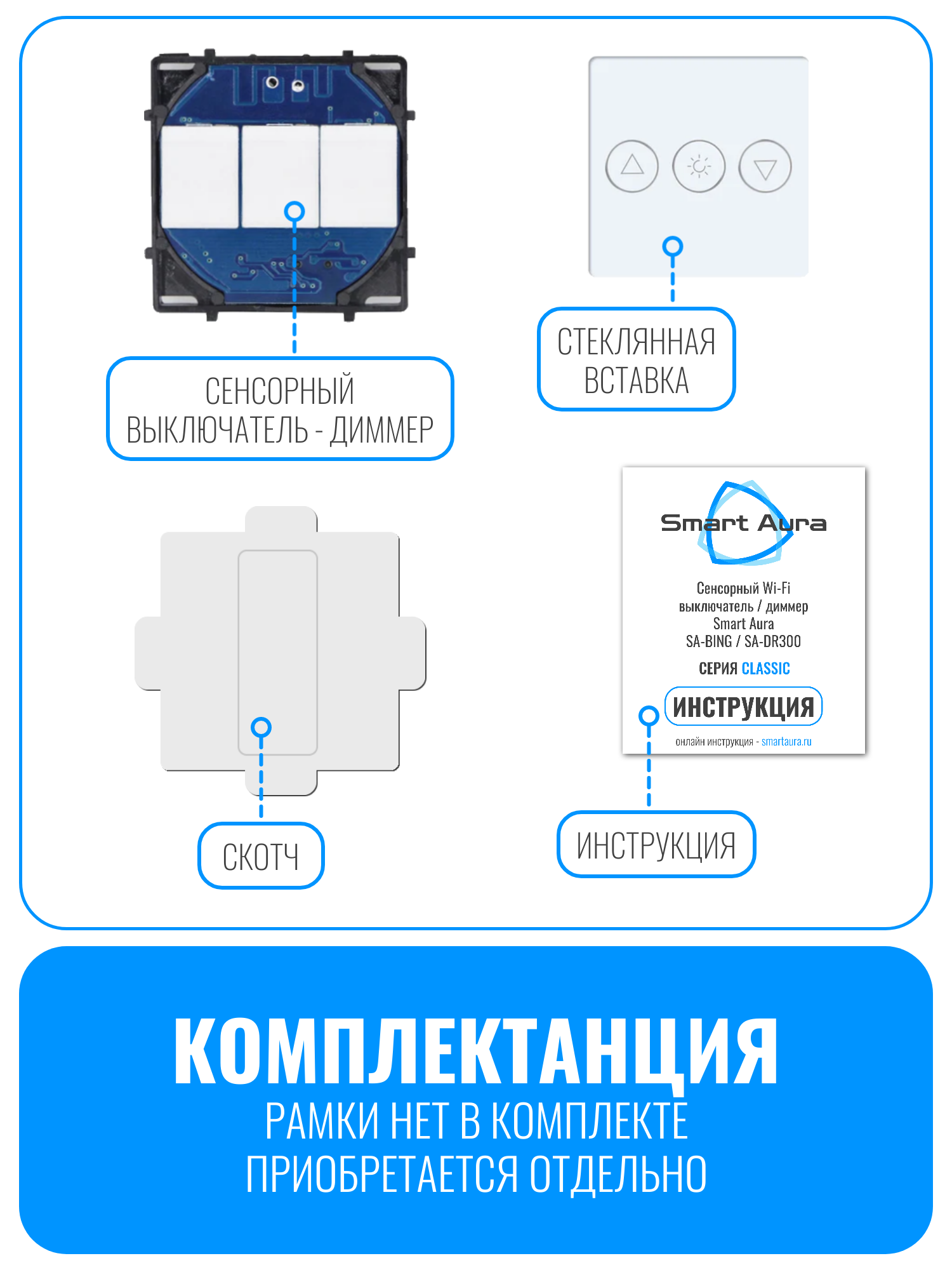 Внимание! Рамки нет в комплекте, приобретается отдельно. Совместимо с рамкой Smart Aura серии Classic: SA-FGU, SA-FPU, SA-FAU