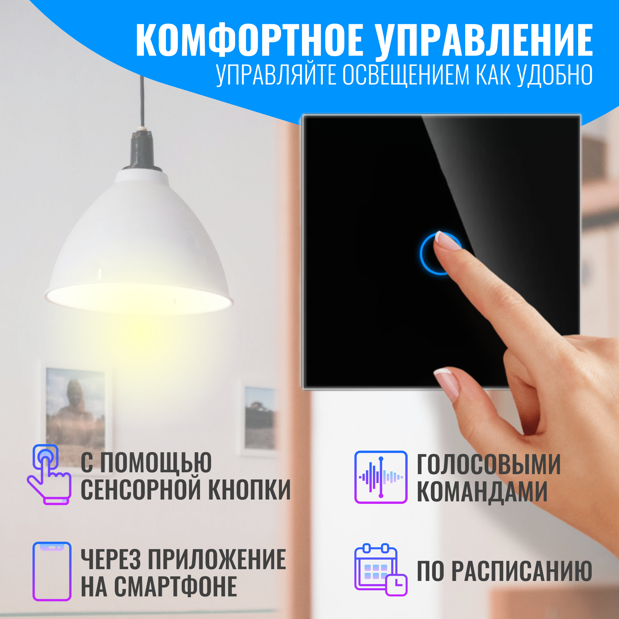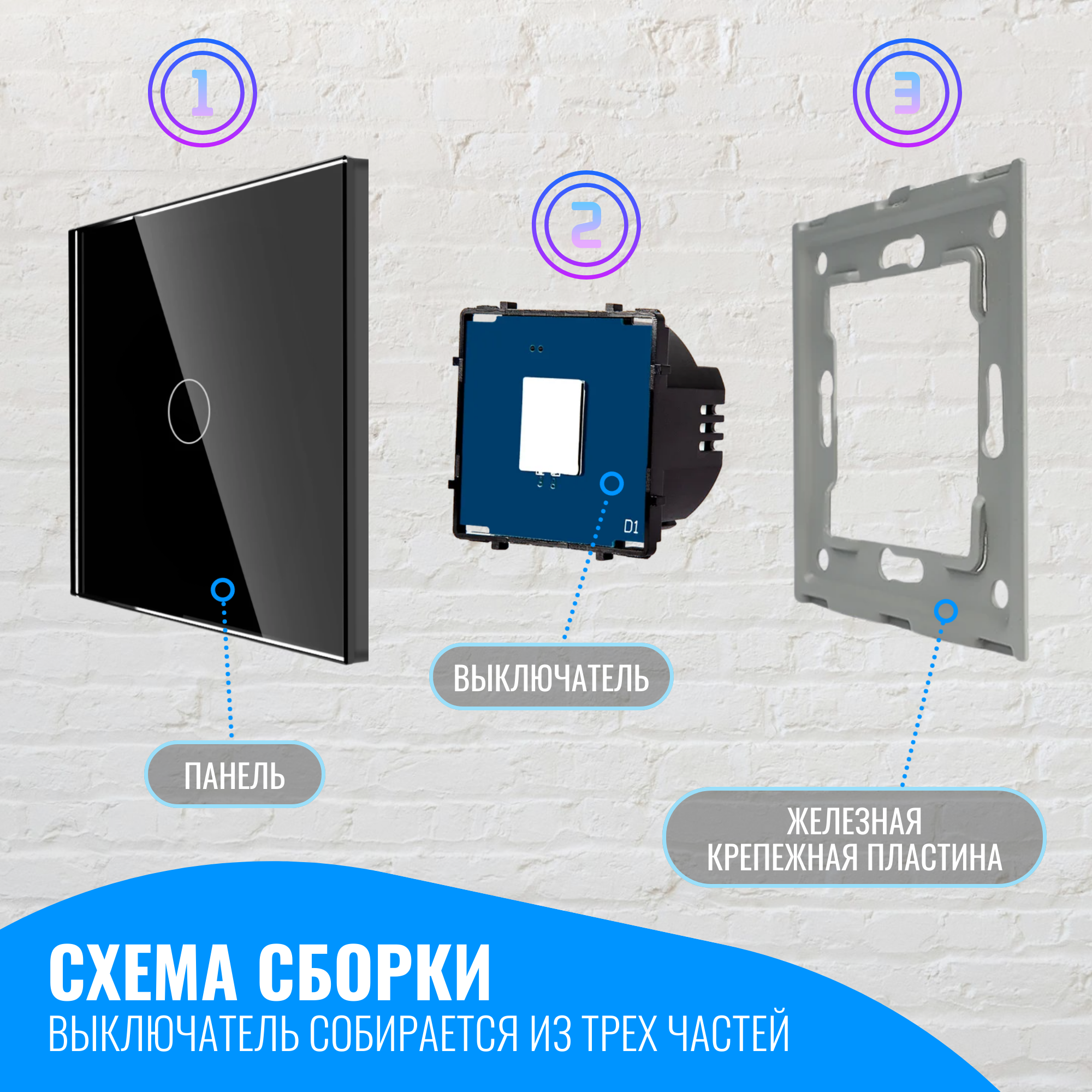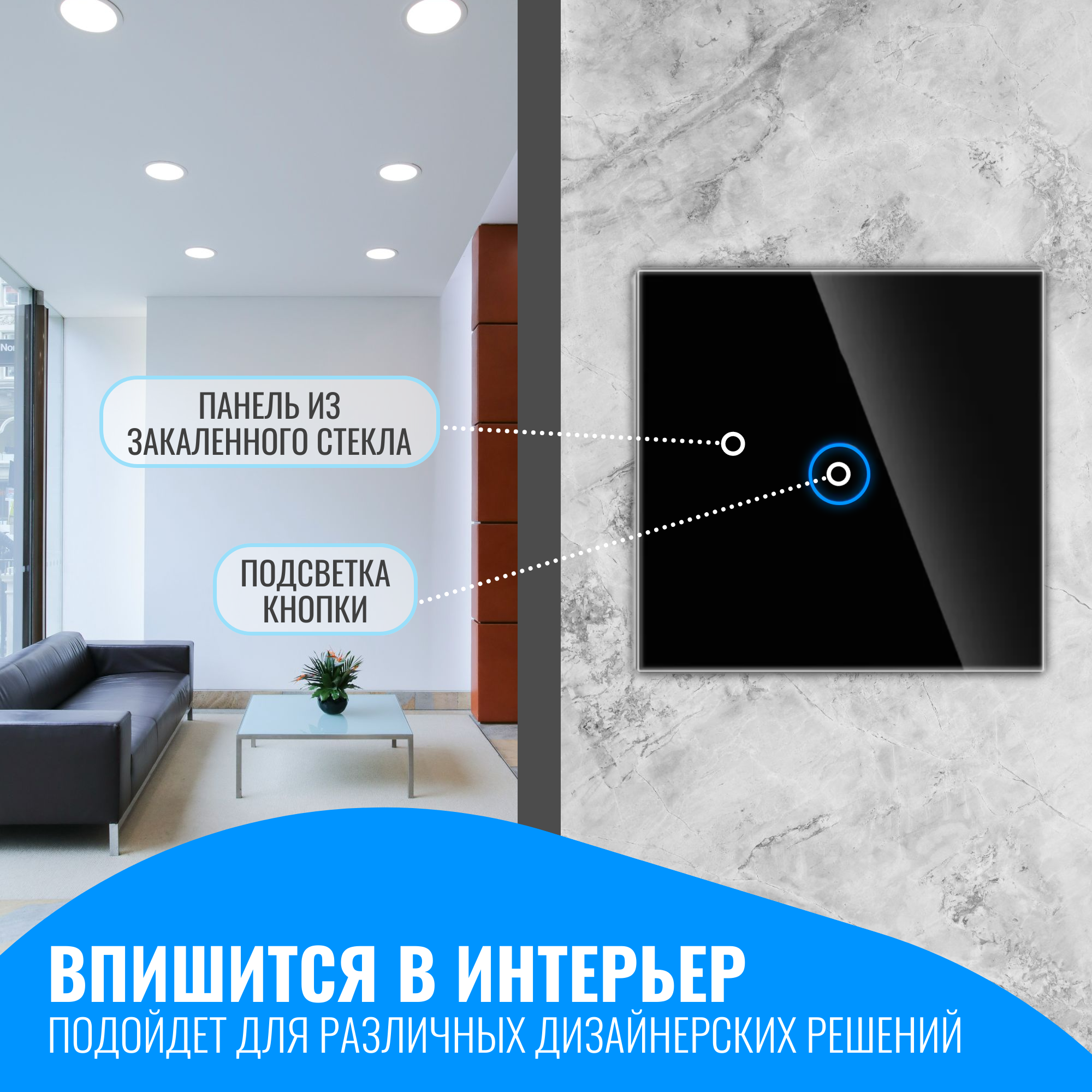 Сенсорная кнопка оснащена подсветкой, которая меняет свою яркость: тусклый свет при выключенном состоянии и яркий — при включенном. Элегантная панель изготовлена из высококачественного закаленного стекла, устойчивого к влажности и легко очищаемого от загрязнений. Устройство использует емкостной сенсор, аналогичный сенсору в смартфонах, что обеспечивает высокую чувствительность к легким прикосновениям.