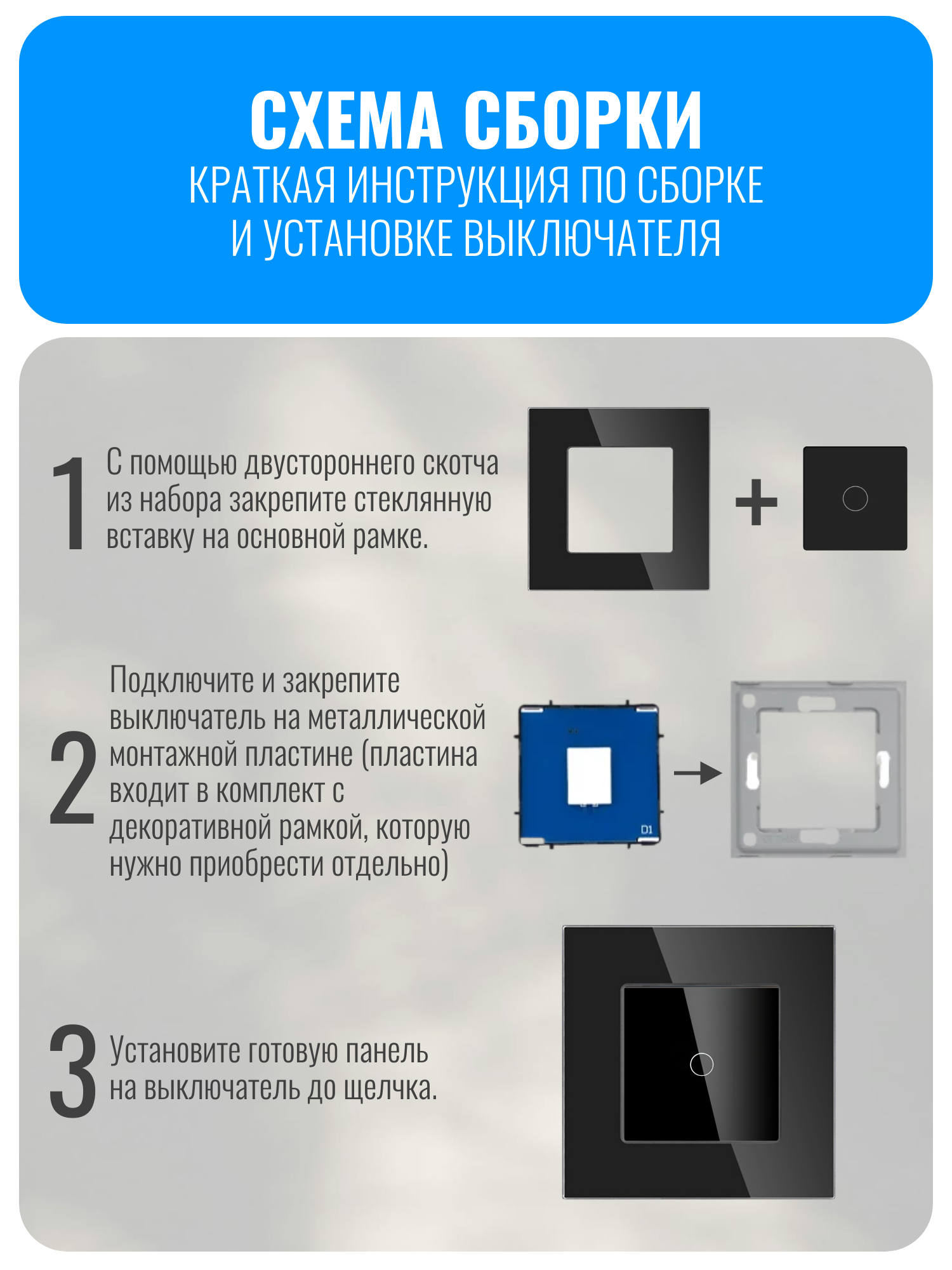 Выключатель, стеклянная вставка, двухсторонний скотч, инструкция