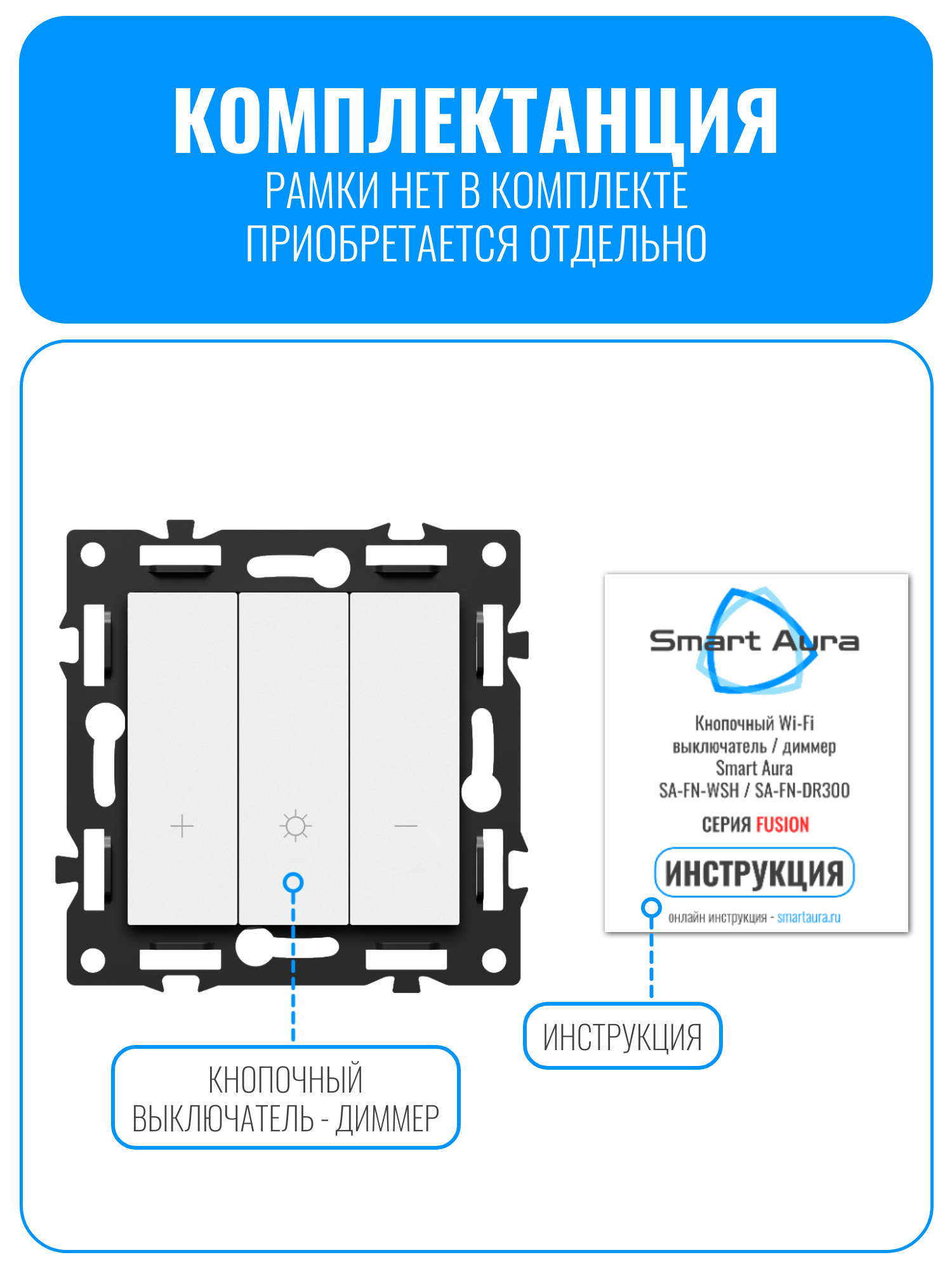Внимание! Рамки нет в комплекте, приобретается отдельно. Совместимо с рамкой Smart Aura серии Fusion: SA-FN-GS