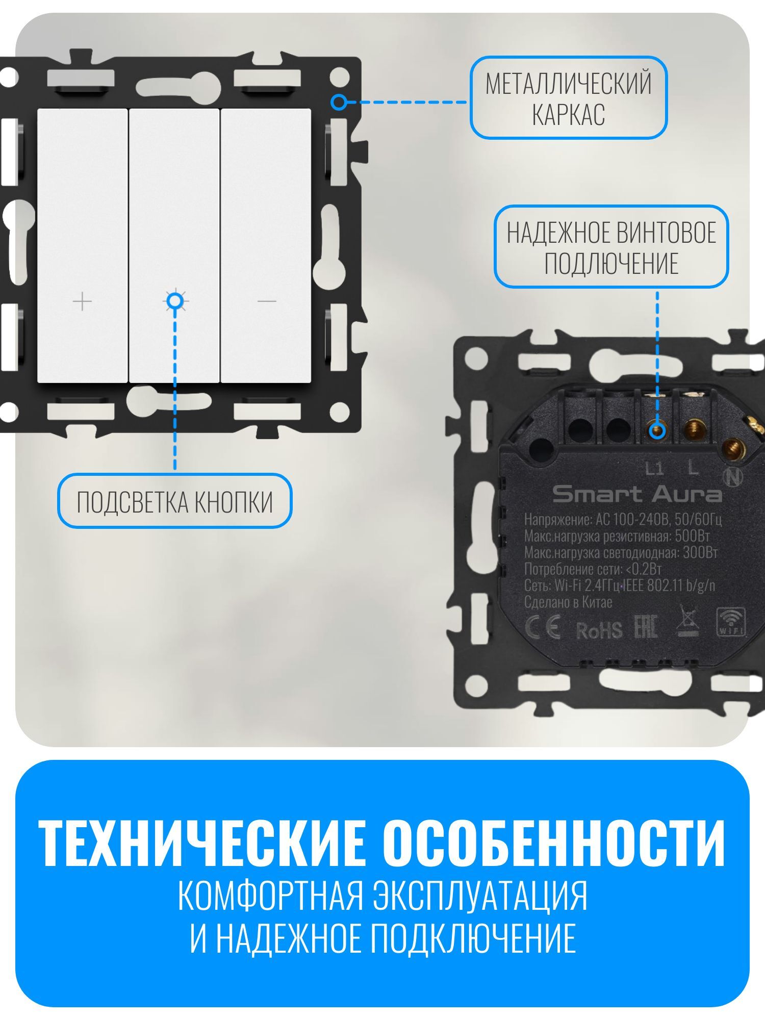 Внимание! Рамки нет в комплекте, приобретается отдельно. Совместимо с рамкой Smart Aura серии Fusion: SA-FN-GS