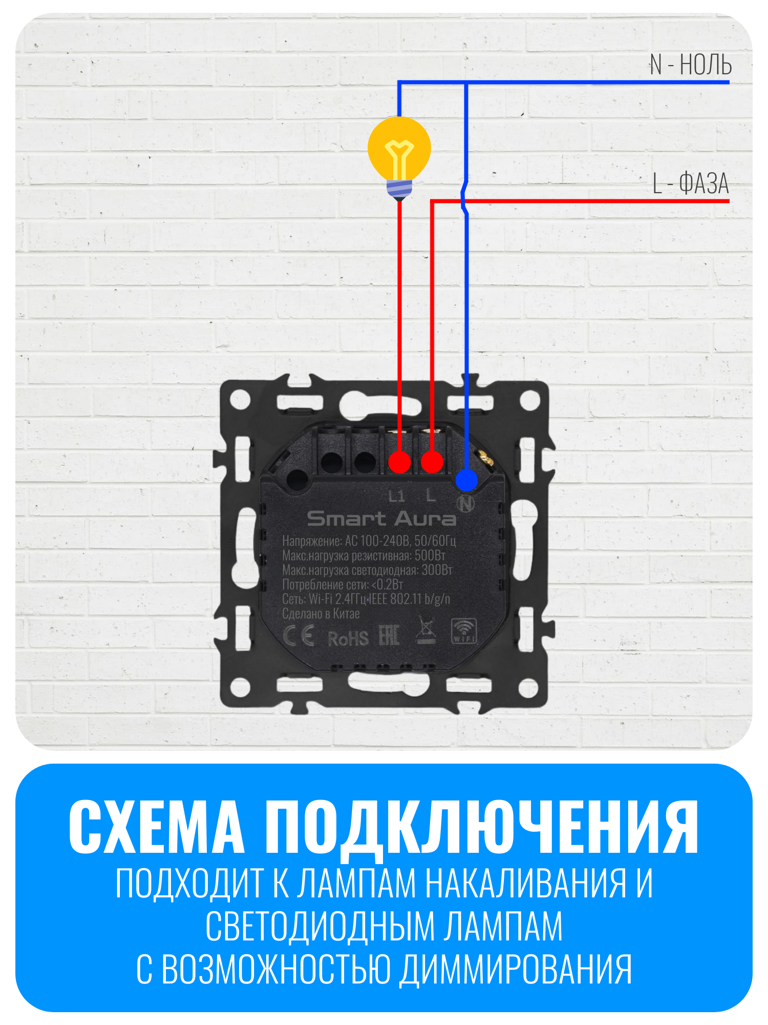 Умный кнопочный Wi-Fi выключатель-диммер Smart Aura SA-FN-DR300 из серии Fusion позволяет управлять освещением в одной цепи 220 В. С его помощью можно включать и выключать свет, а также регулировать яркость с помощью кнопки на устройстве, через мобильное приложение или голосовыми командами. Выключатель поддерживает работу с лампами накаливания мощностью до 500 Вт и светодиодными лампами с функцией диммирования до 300 Вт.