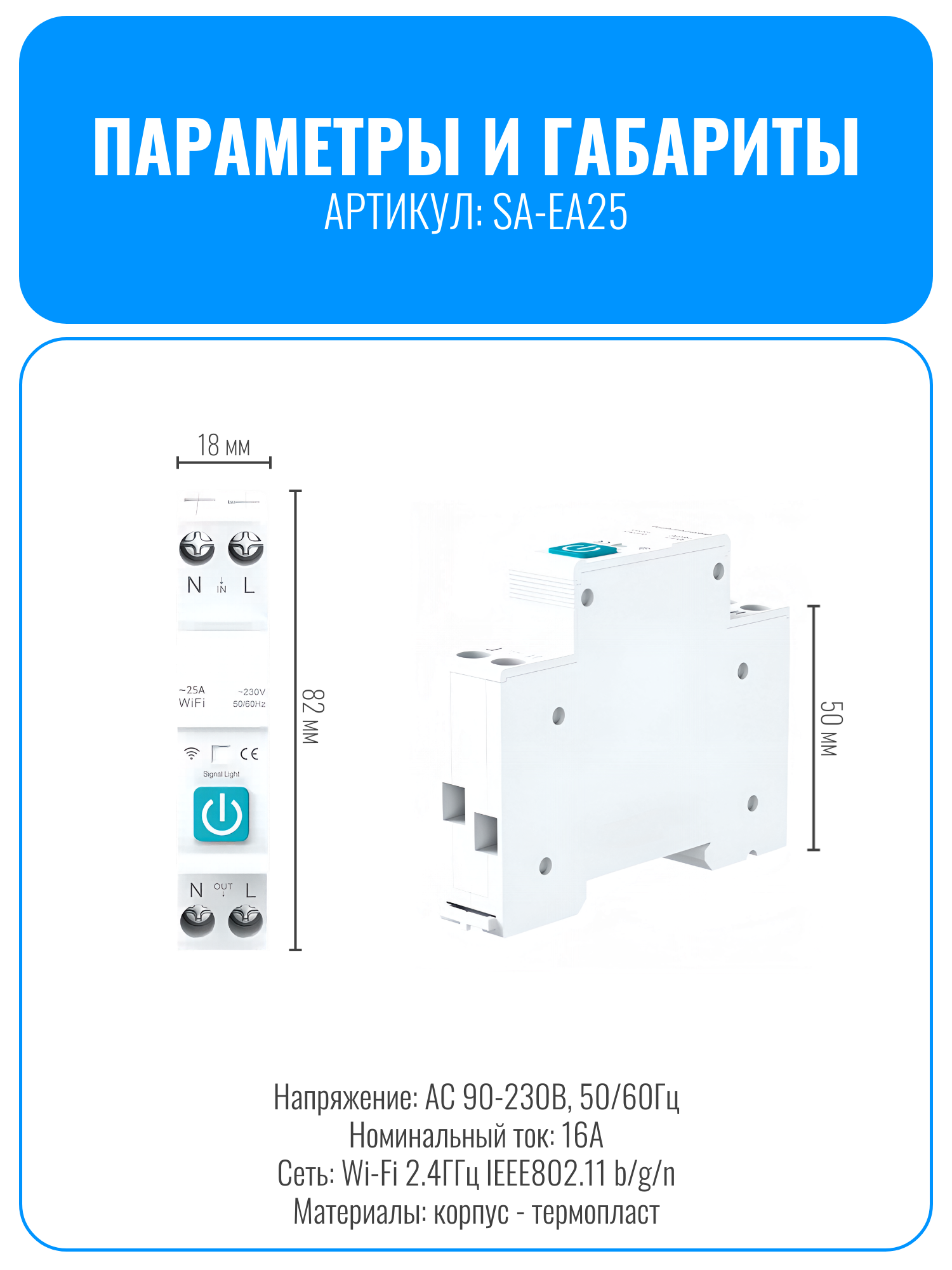 Умный Wi-Fi выключатель на DIN-рейку Smart Aura SA-EA – это многофункциональный компонент для вашего умного дома с удаленным управлением через приложение на смартфоне или голосовой помощник.