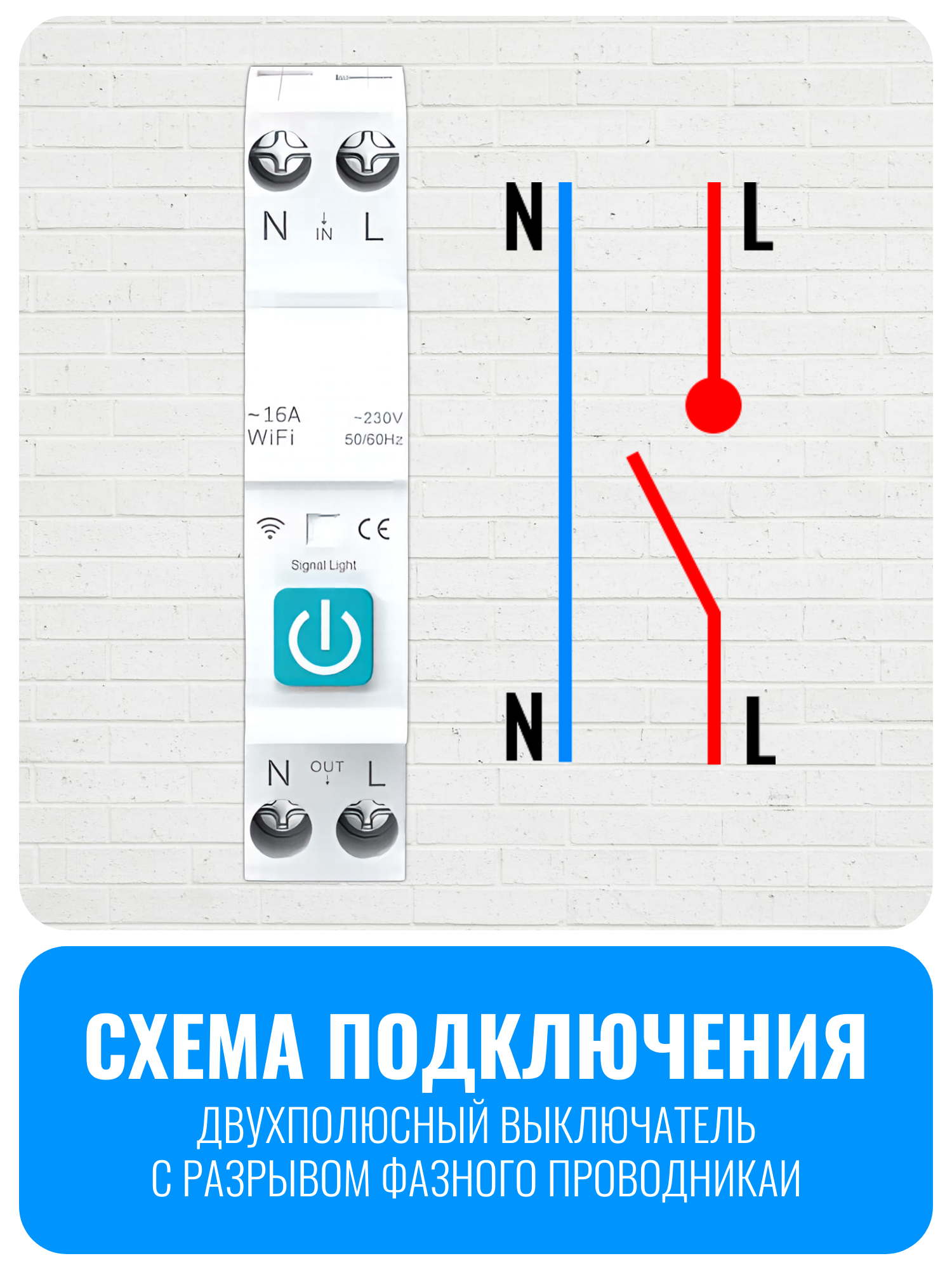 ВНИМАНИЕ! Подключение: питание должно вводиться сверху и должно быть прямым + нейтральным (L + N).