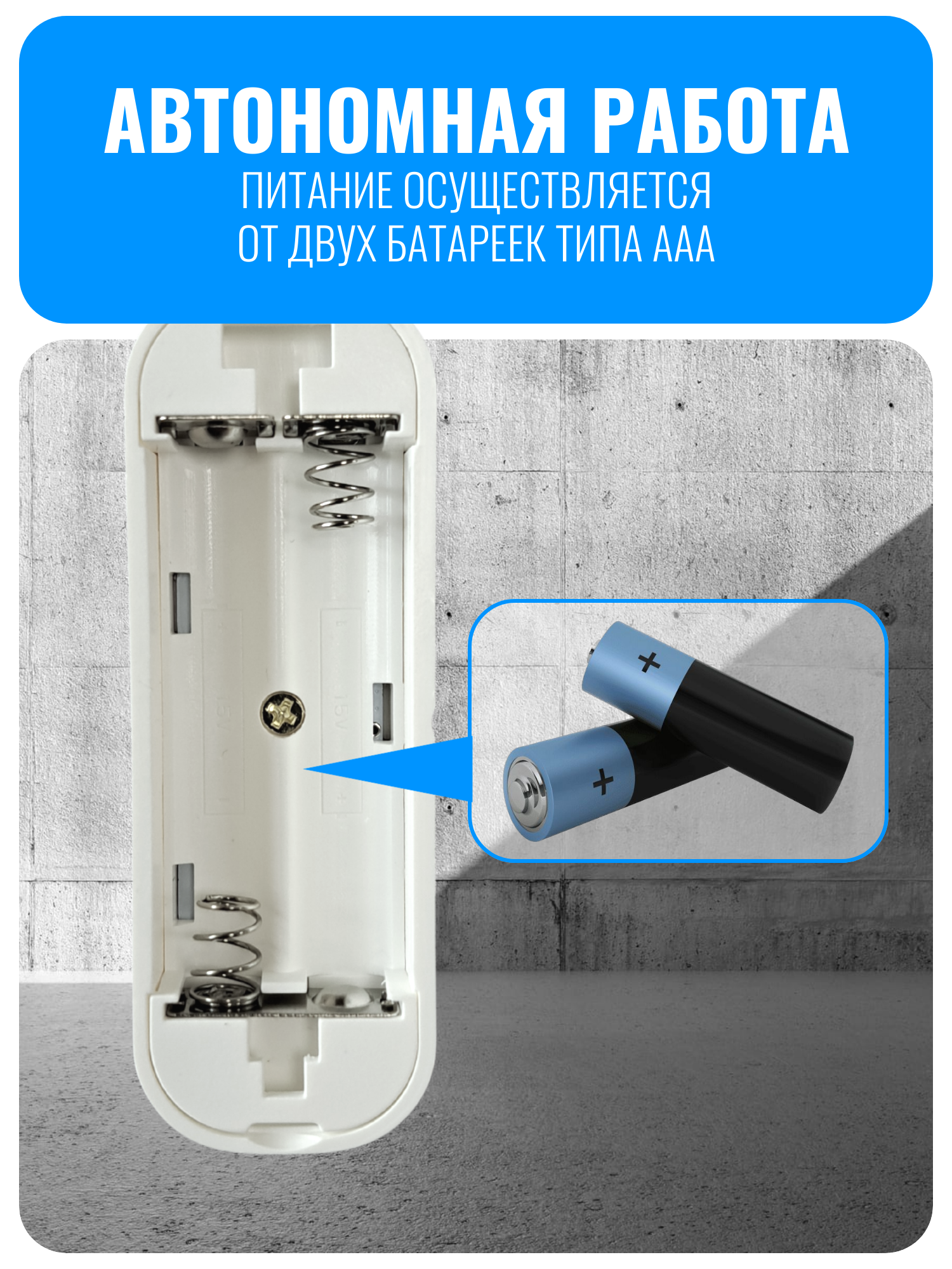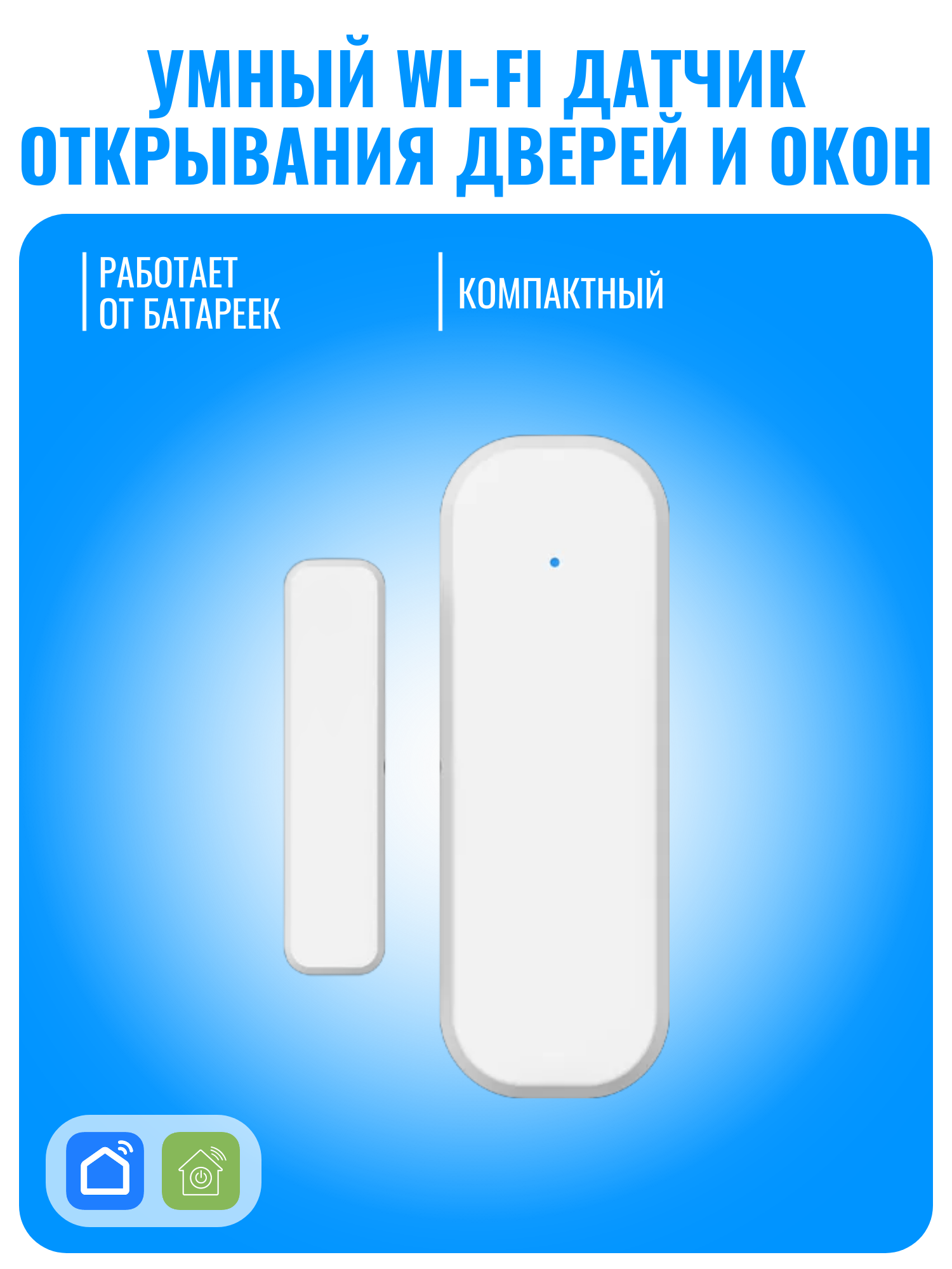 Устройство питается от двух батареек типа ААА (не входят в комплект) и управляется через приложение Smart Life или DIGMA SmartLife. Установка проста: подключите датчик к Wi-Fi с частотой 2,4 ГГц и добавьте его в приложение.