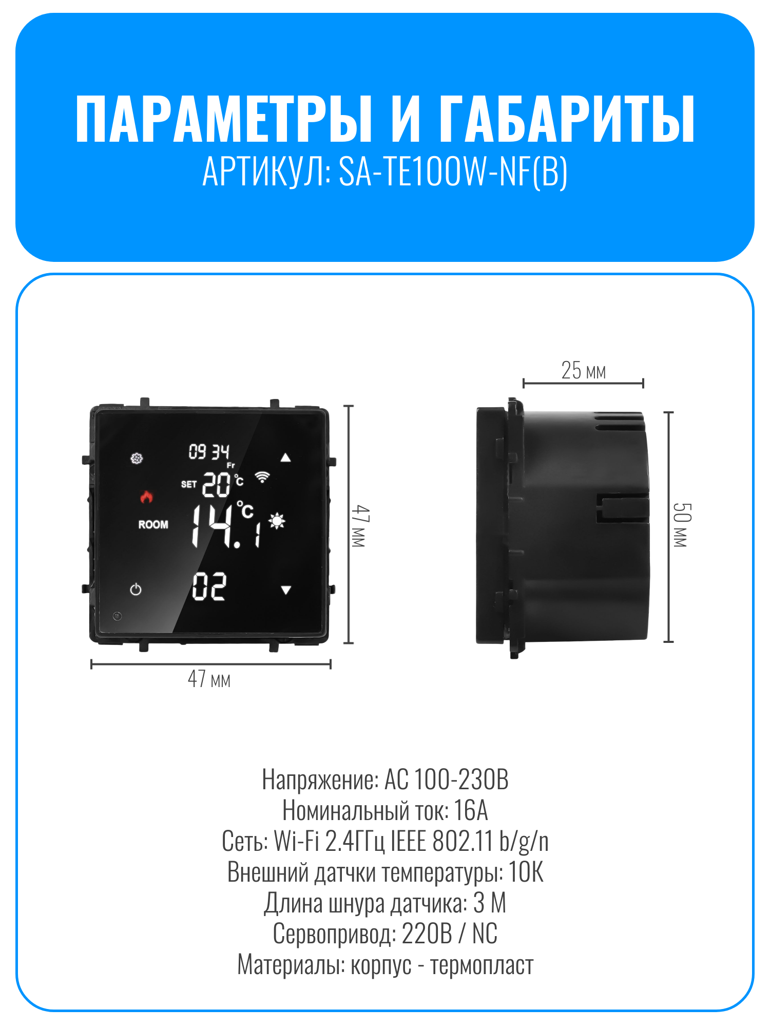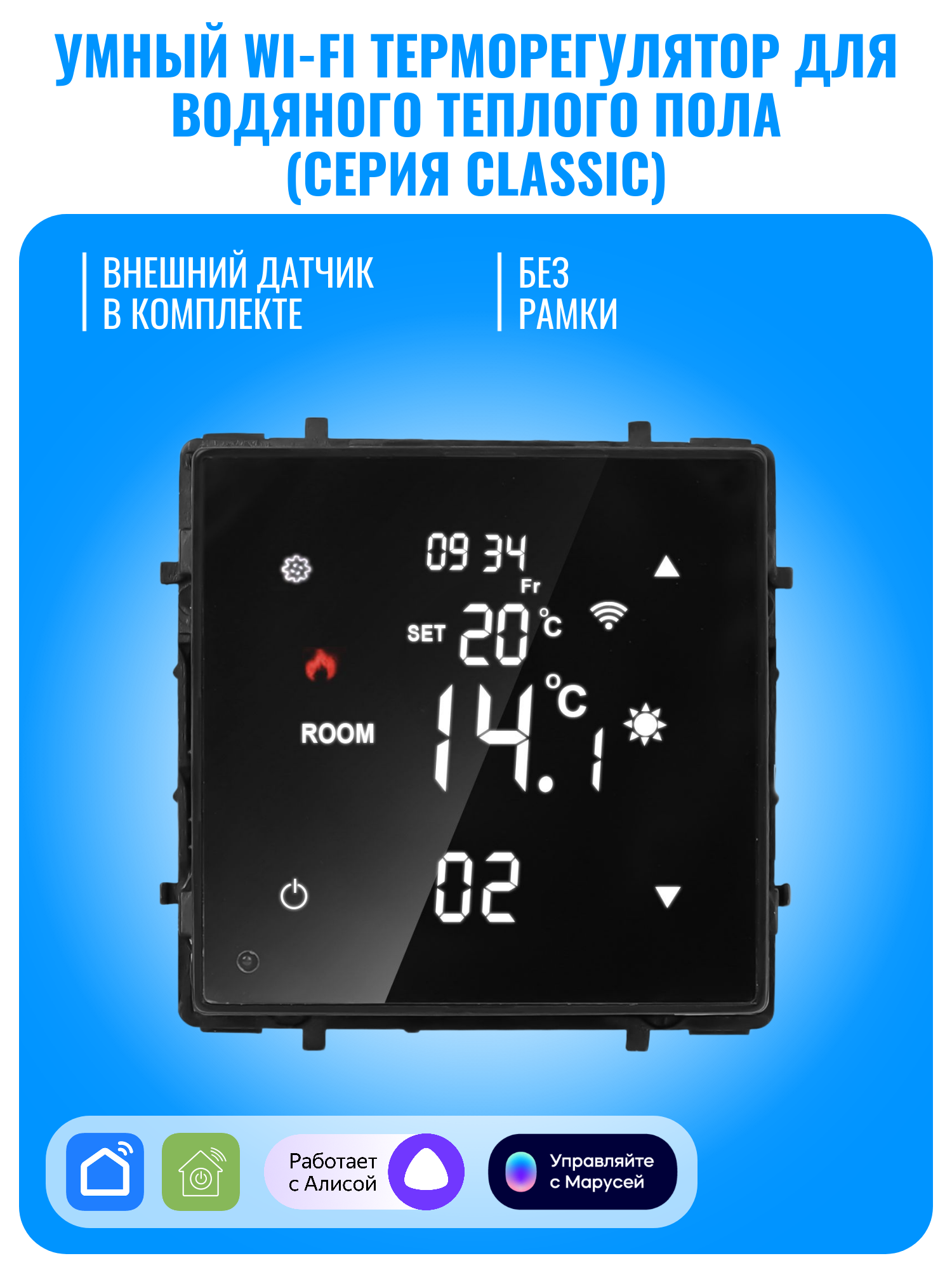 Умный Wi-Fi терморегулятор Smart Aura SA-TE100W для водяного теплого пола - это современное и удобное решение для управления теплым полом в вашем доме. Вы можете включать или выключать обогрев голосом или с помощью своего смартфона.