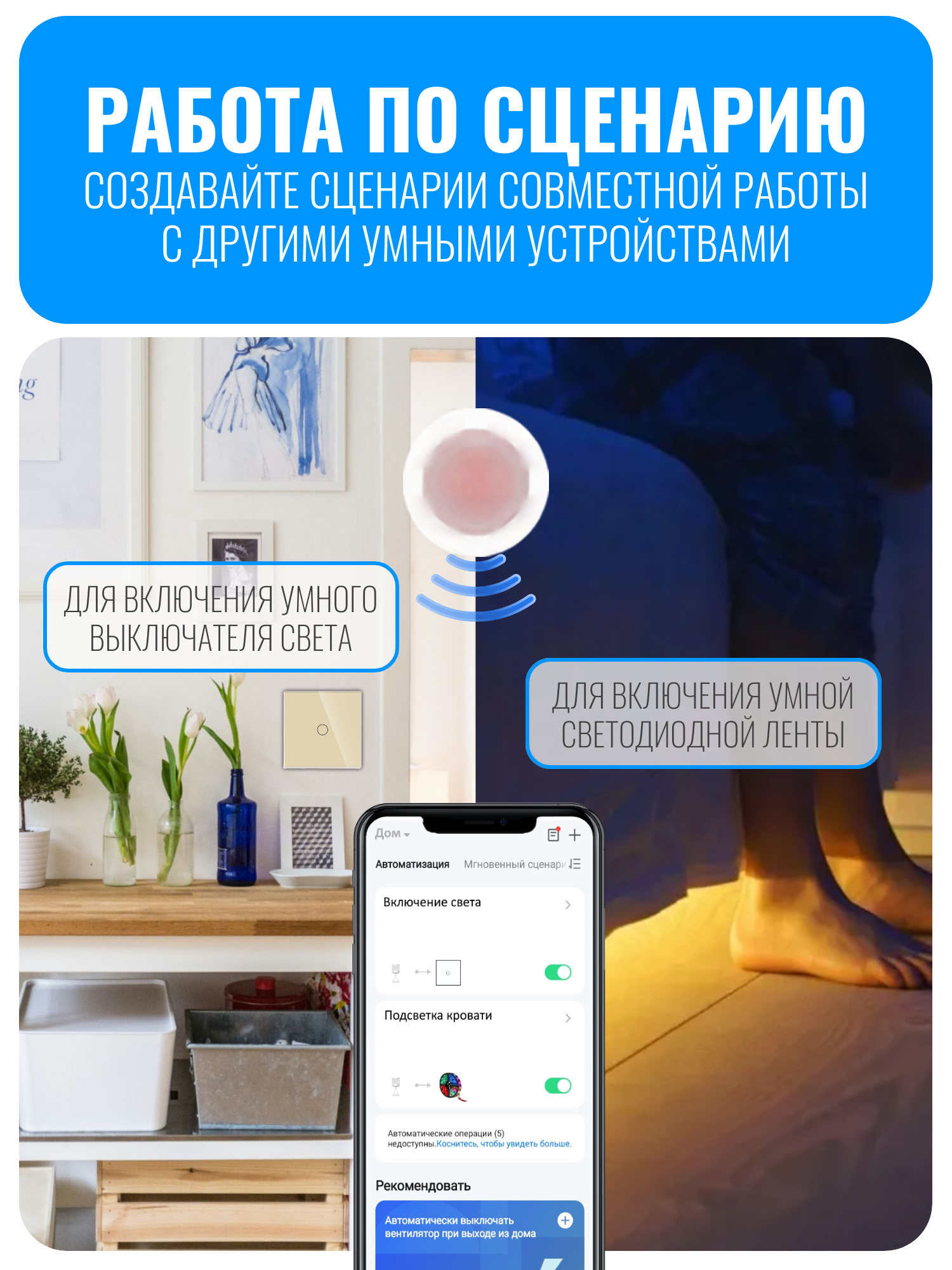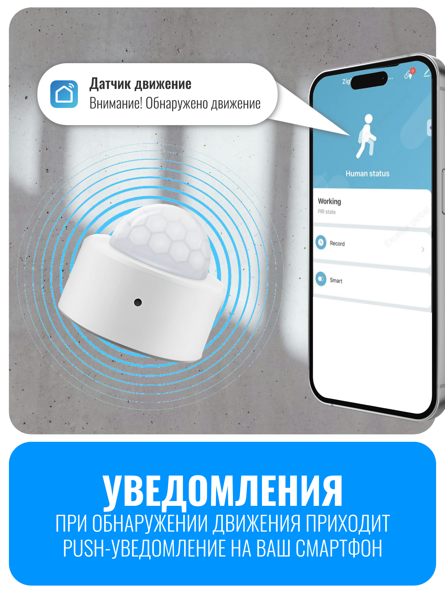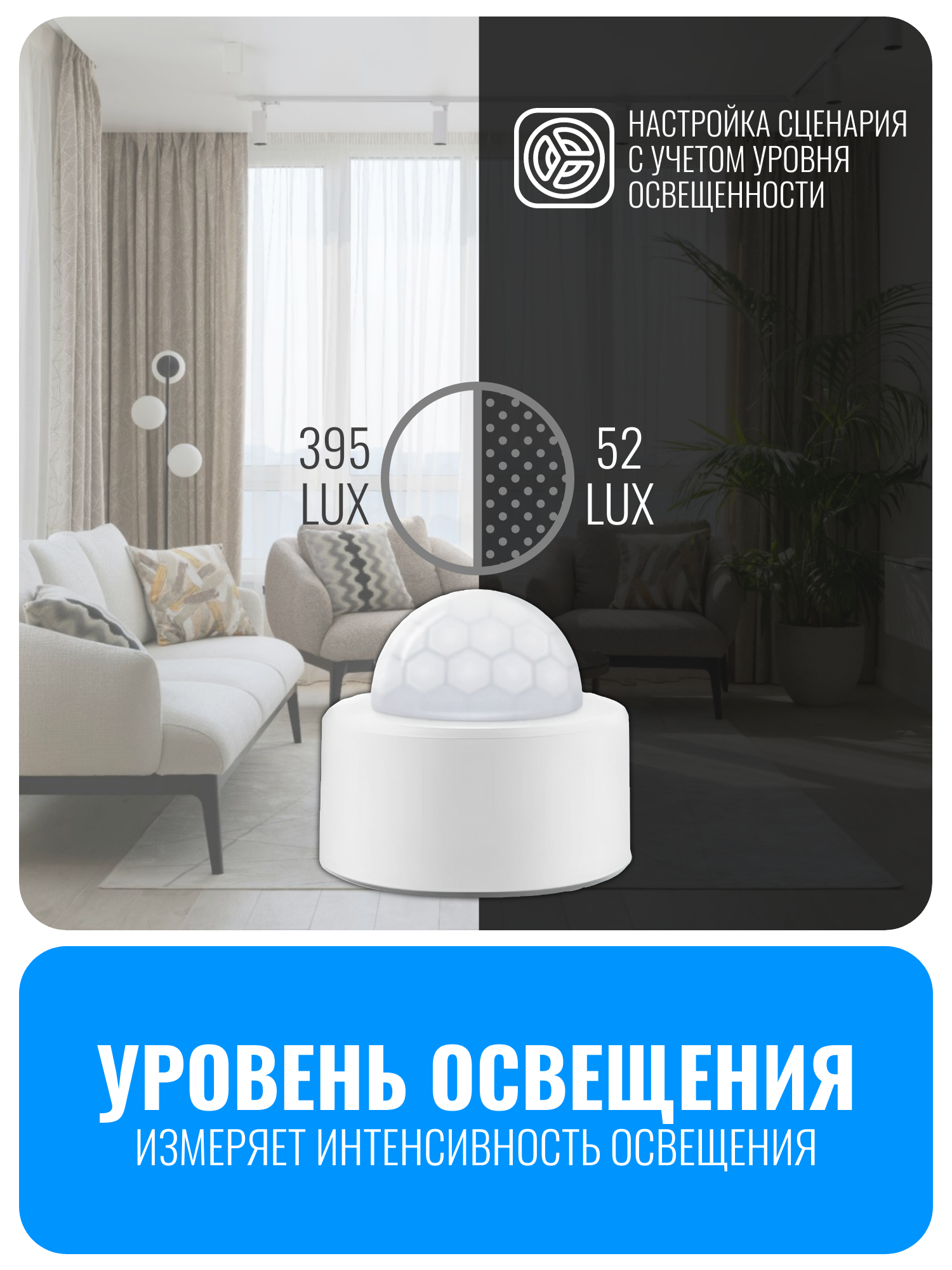 При обнаружении движения датчик отправляет уведомление на ваш смартфон через приложение. Это позволяет использовать его для охраны помещения и ведения журнала событий. Датчик Smart Aura может участвовать в сценариях для автоматизации других умных устройств, таких как освещение, розетки или реле. Датчик также оснащен сенсором освещенности, что позволяет настраивать сценарии в зависимости от уровня света в помещении. Это делает устройство многофункциональным и удобным. Датчик работает от батарейки типа CR2450 и имеет высокую энергоэффективность, что позволяет автономно работать до 1,5 лет.