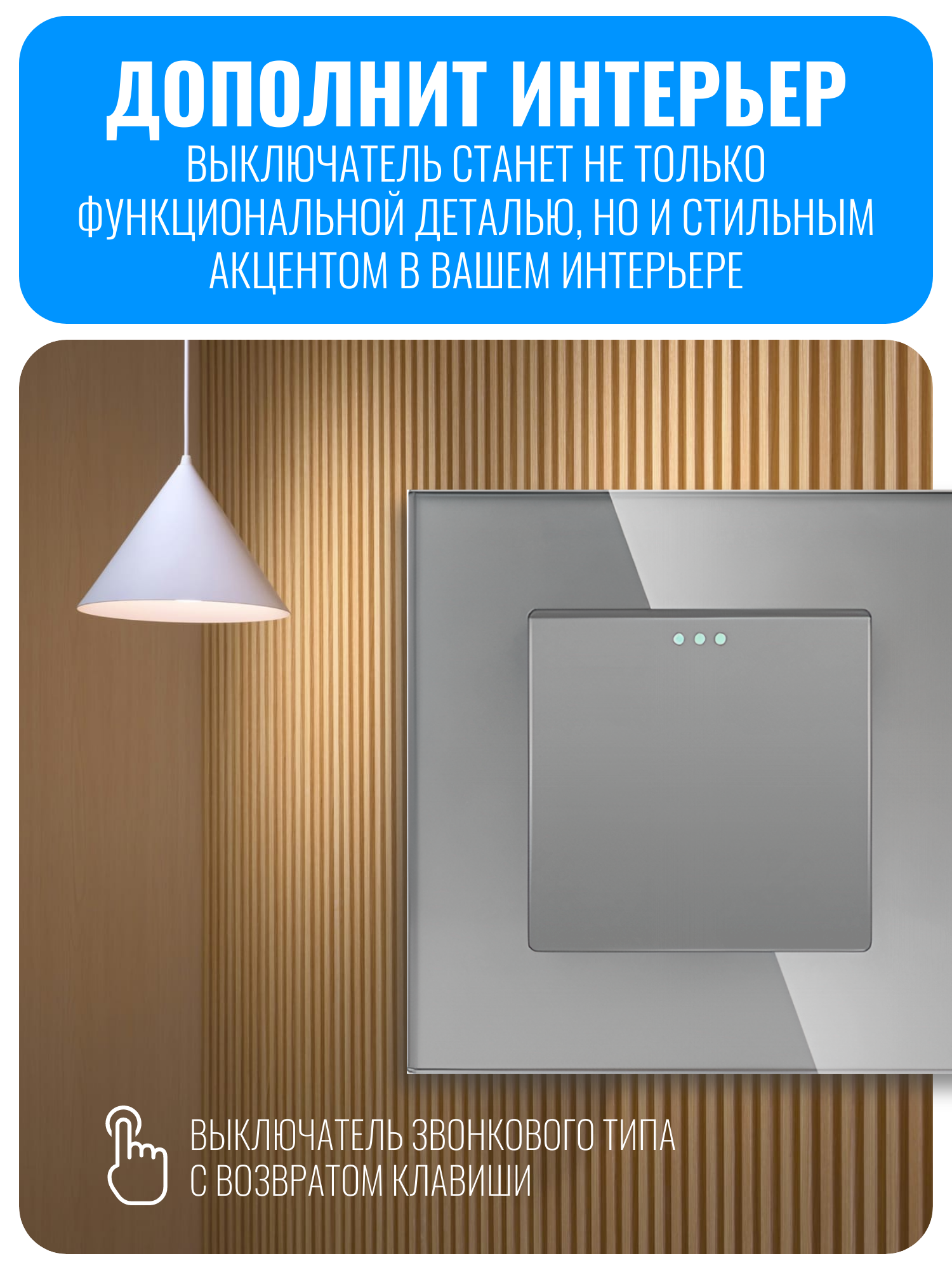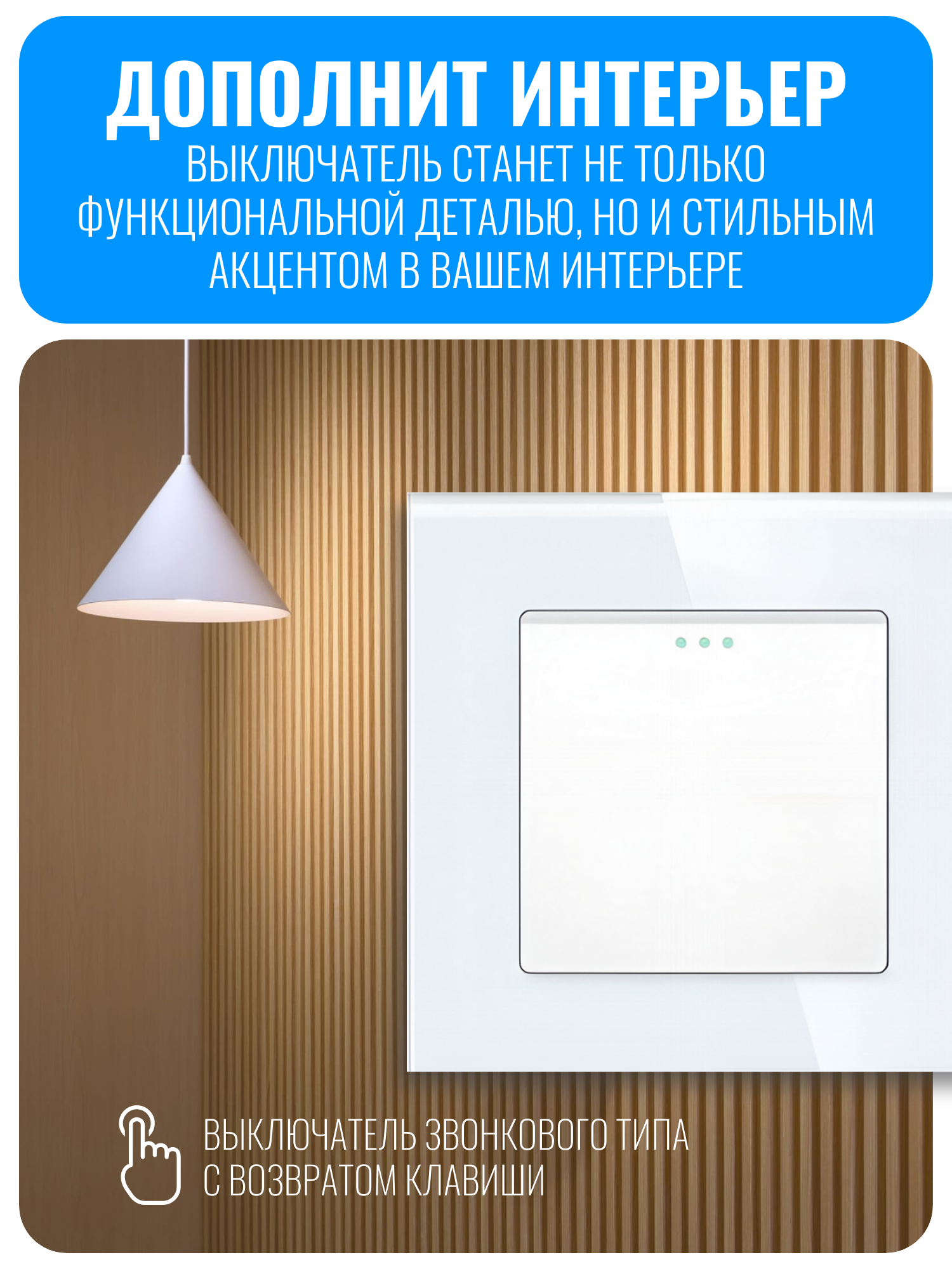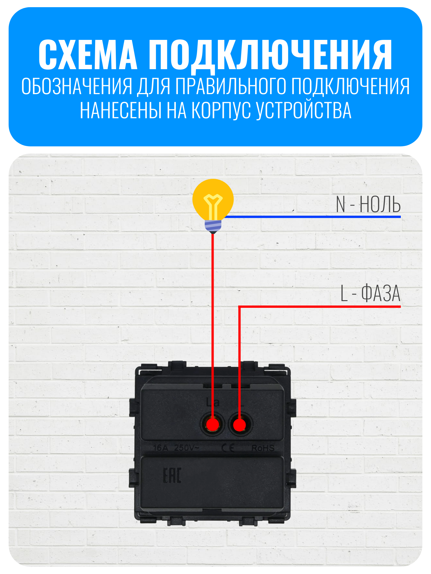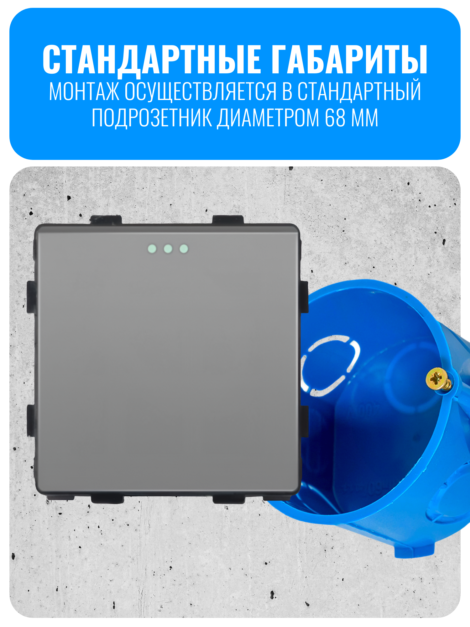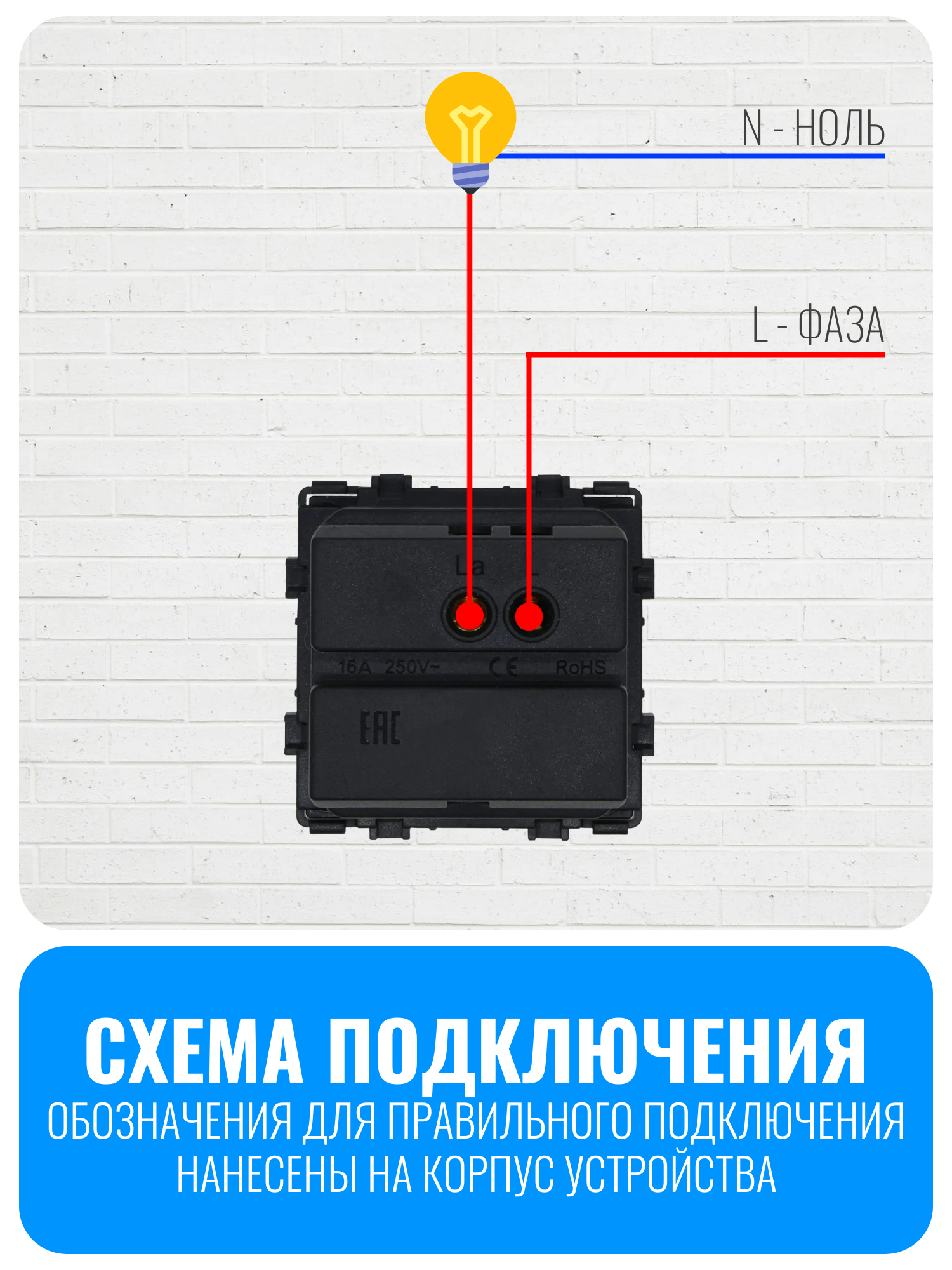 Выключатель можно установить как вертикально, так и горизонтально, что упрощает его интеграцию в любой интерьер. В комплекте поставляется только модуль выключателя, рамку нужно приобрести отдельно. Это позволяет выбрать рамку подходящего цвета и материала, чтобы она гармонично вписывалась в дизайн помещения.