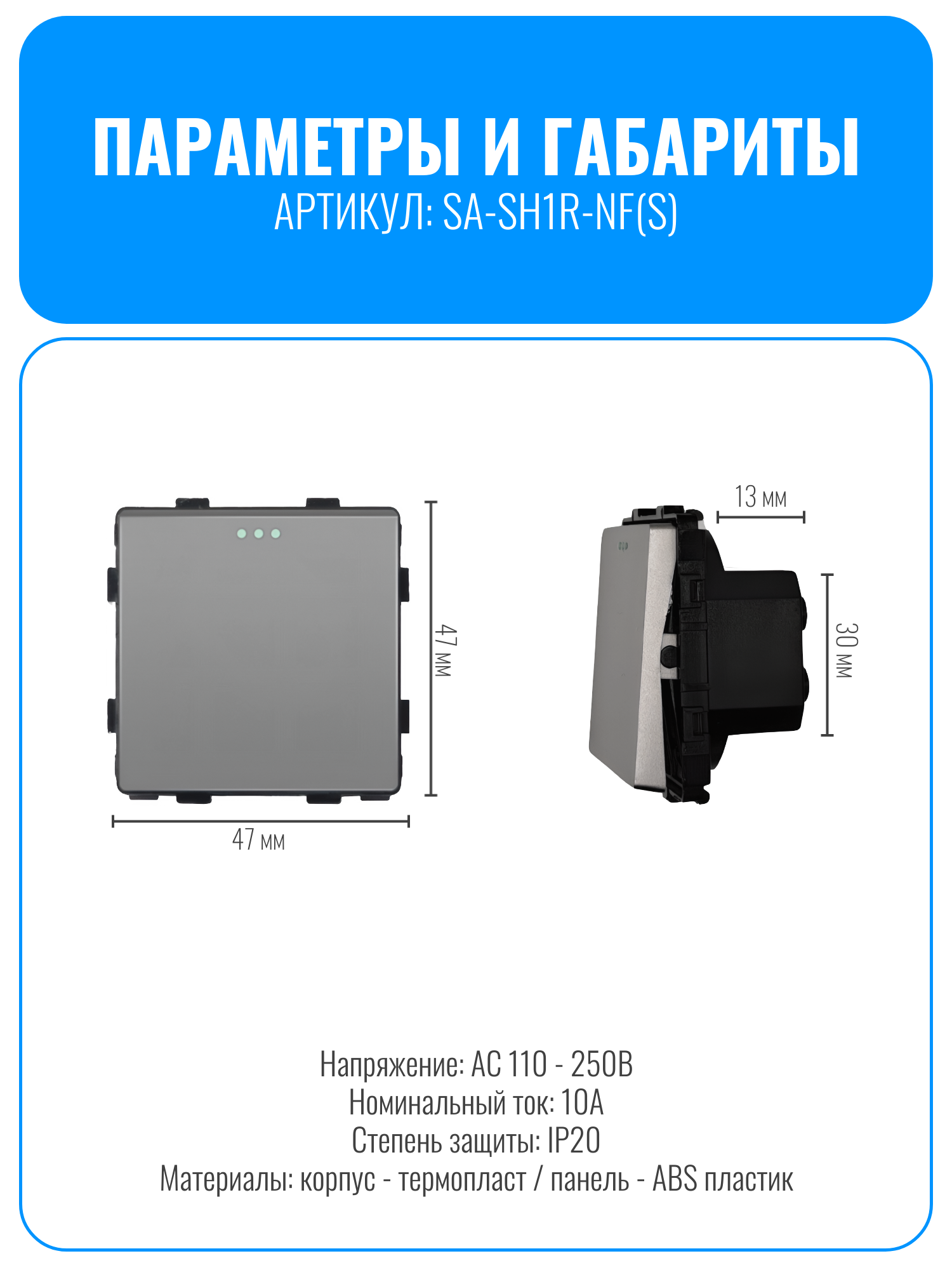 Внимание! Рамки нет в комплекте, приобретается отдельно. Совместимо с рамкой Smart Aura серии Classic: SA-FGU, SA-FPU, SA-FAU