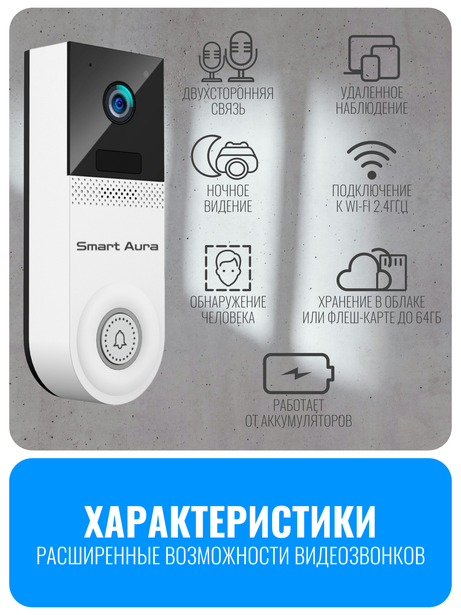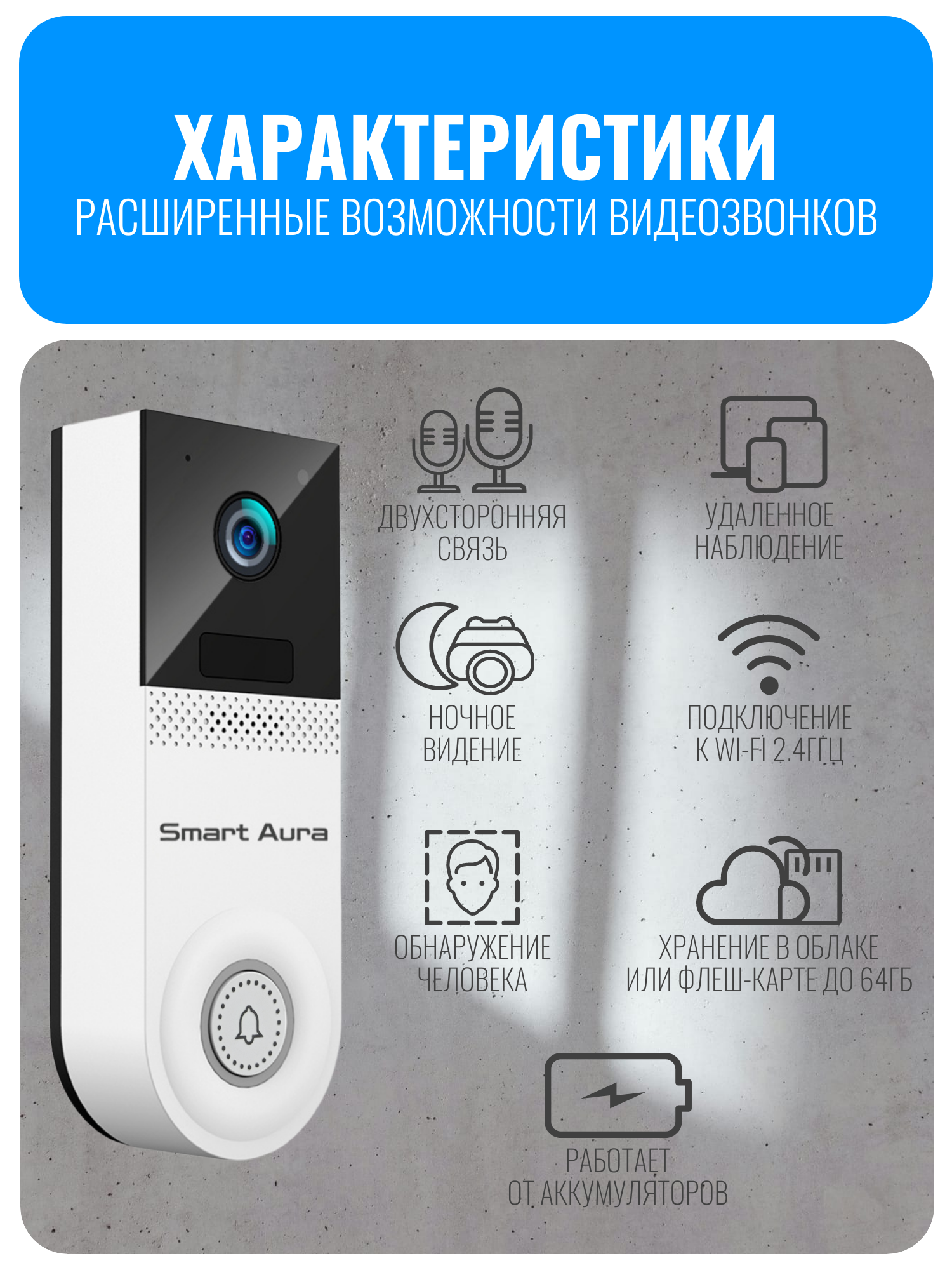 видеозвонок, wifi видеозвонок, умный видеозвонок, видеодомофон, видеозвонок smart aura